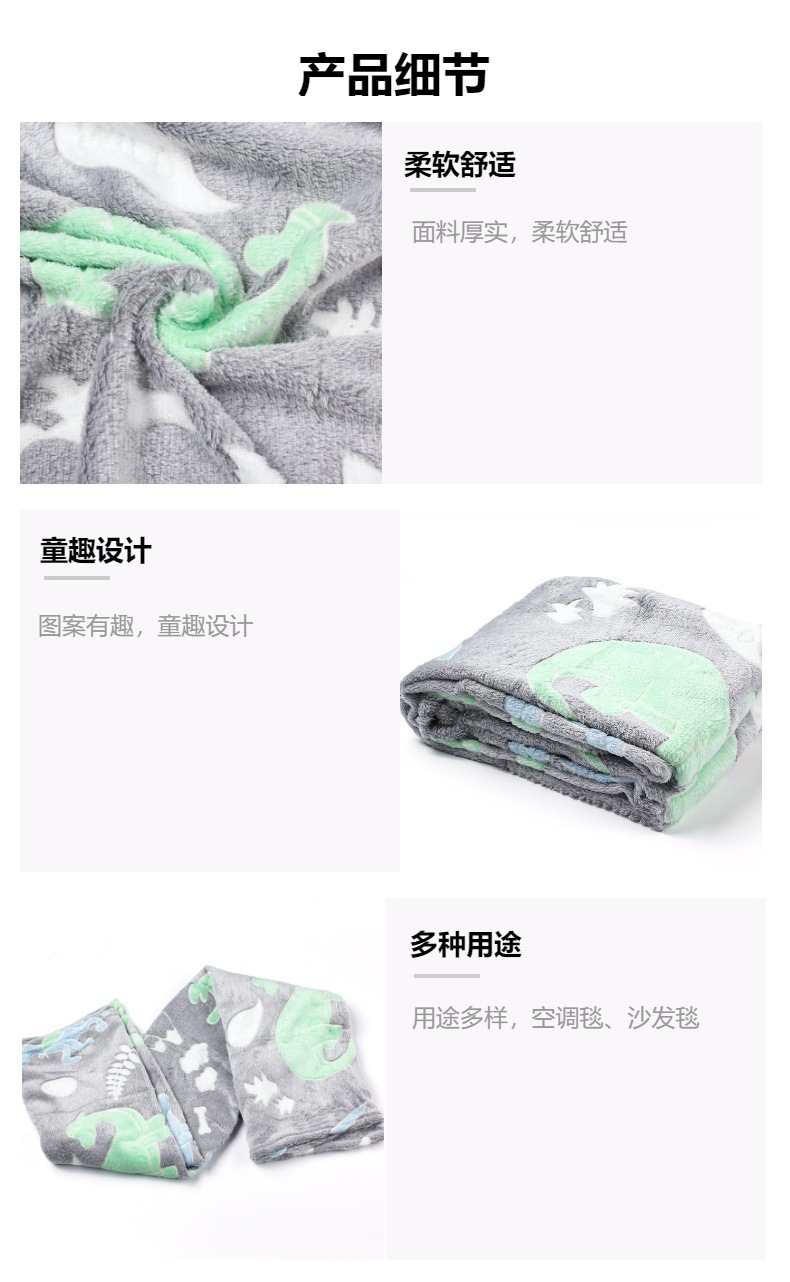 儿童法兰绒夜光毯子童趣可爱柔软舒适盖毯沙发毯午休厂家直销