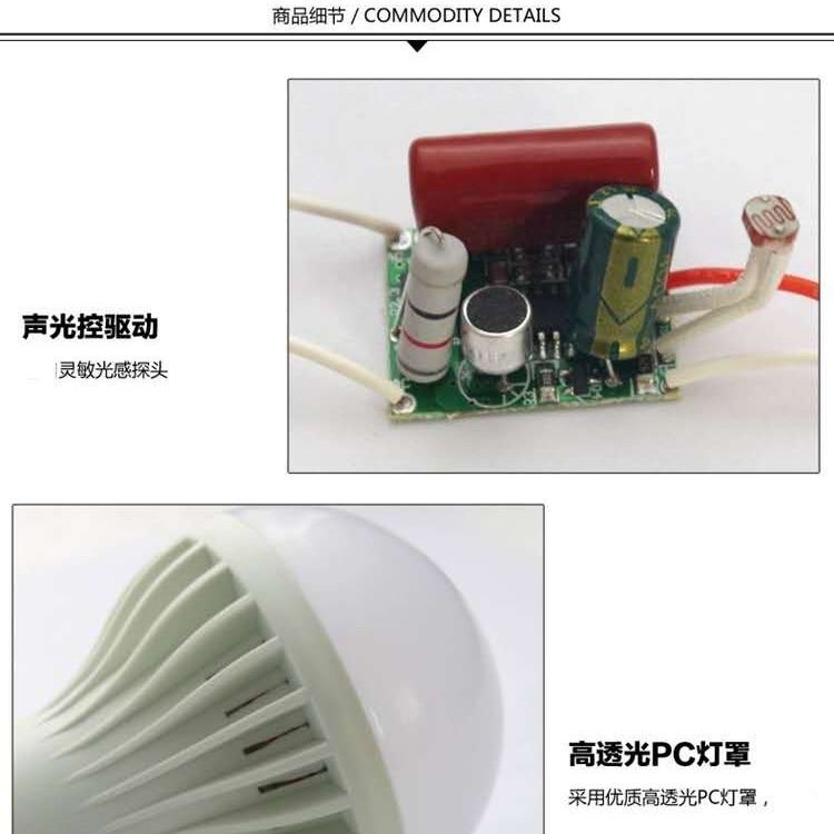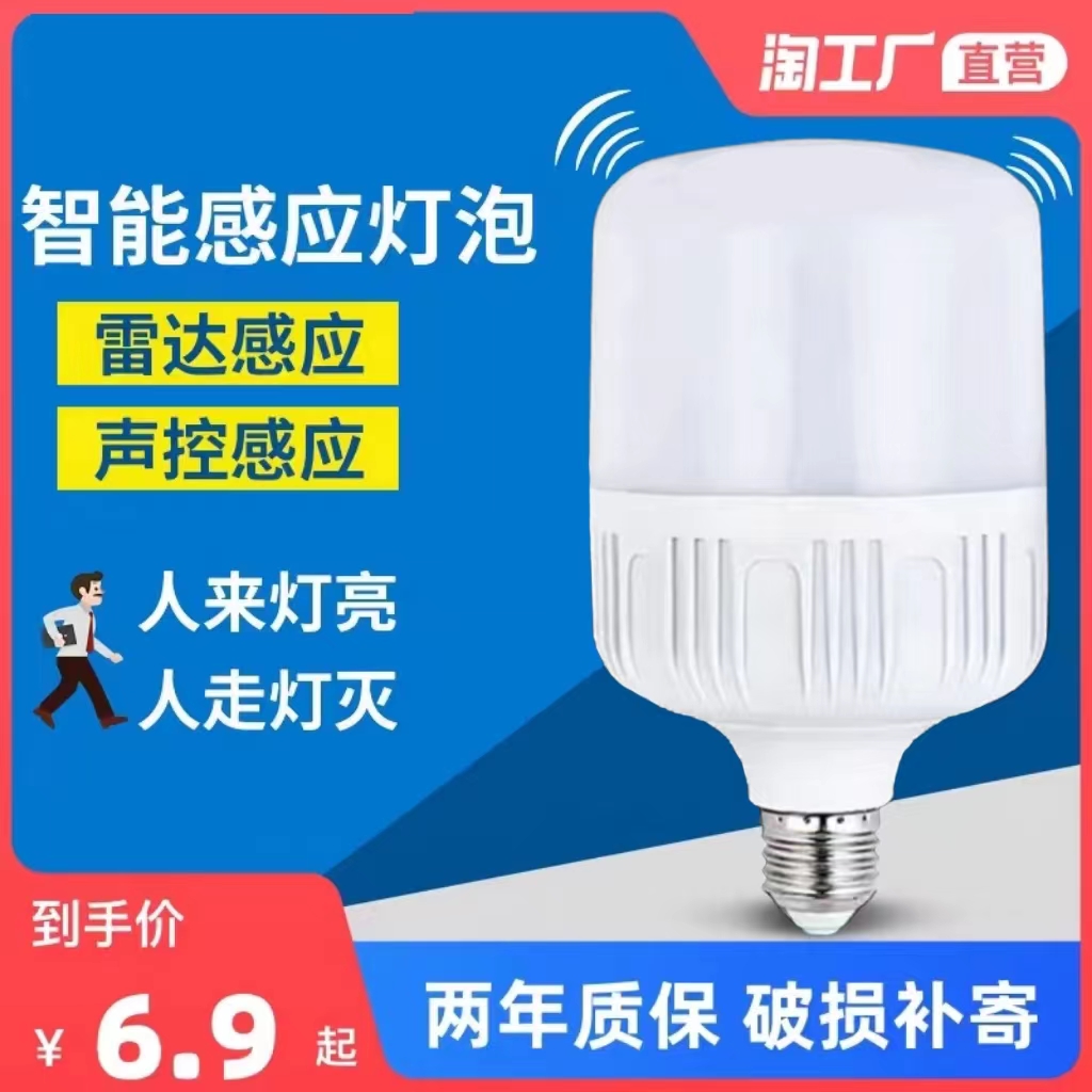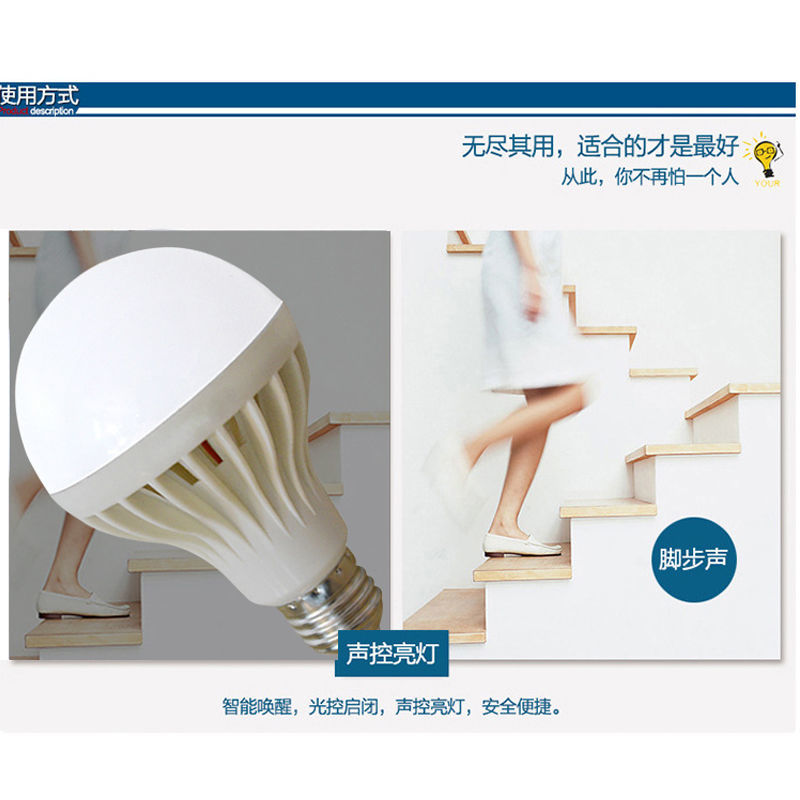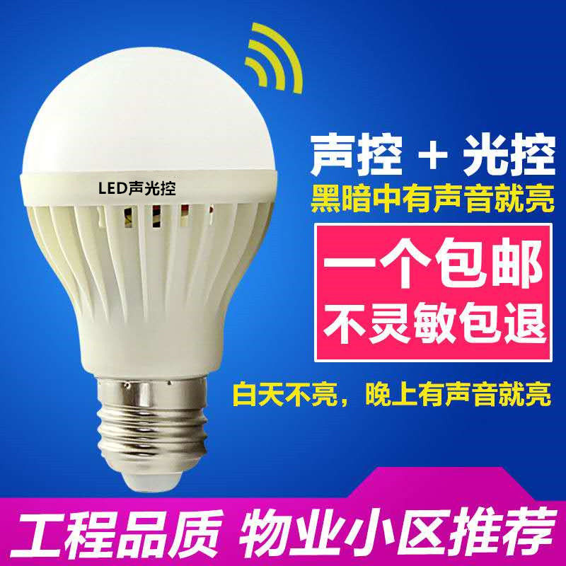 蓝卓声控灯泡楼道声光控雷达灯泡3w5W7WE27螺口感应灯泡节能灯led