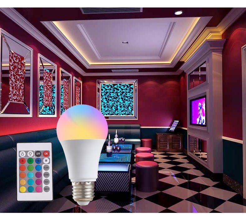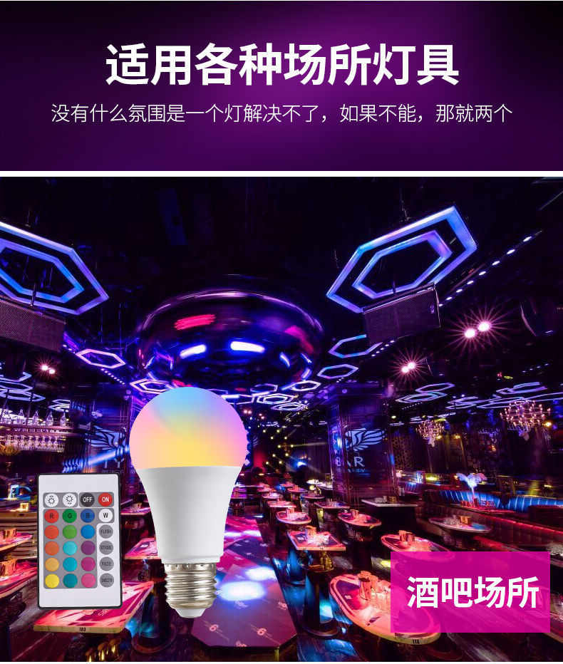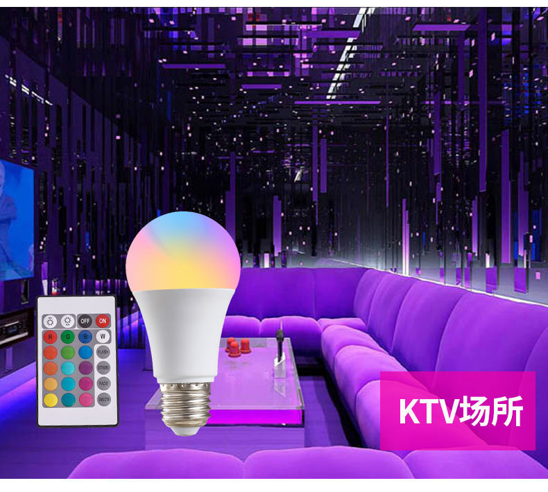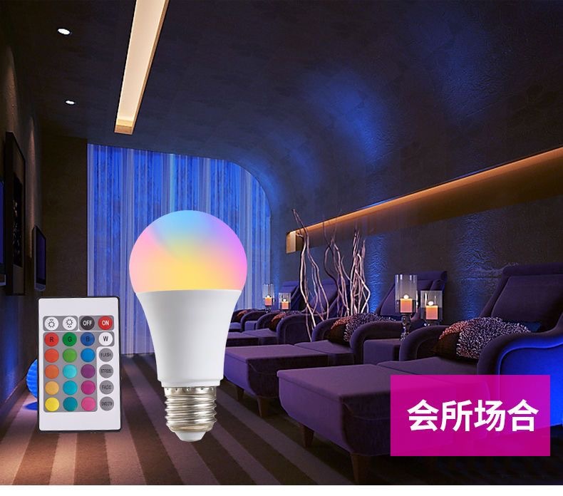A60七彩RGB灯泡16色LED遥控灯泡网红拍照调光氛围灯泡A50彩色球泡