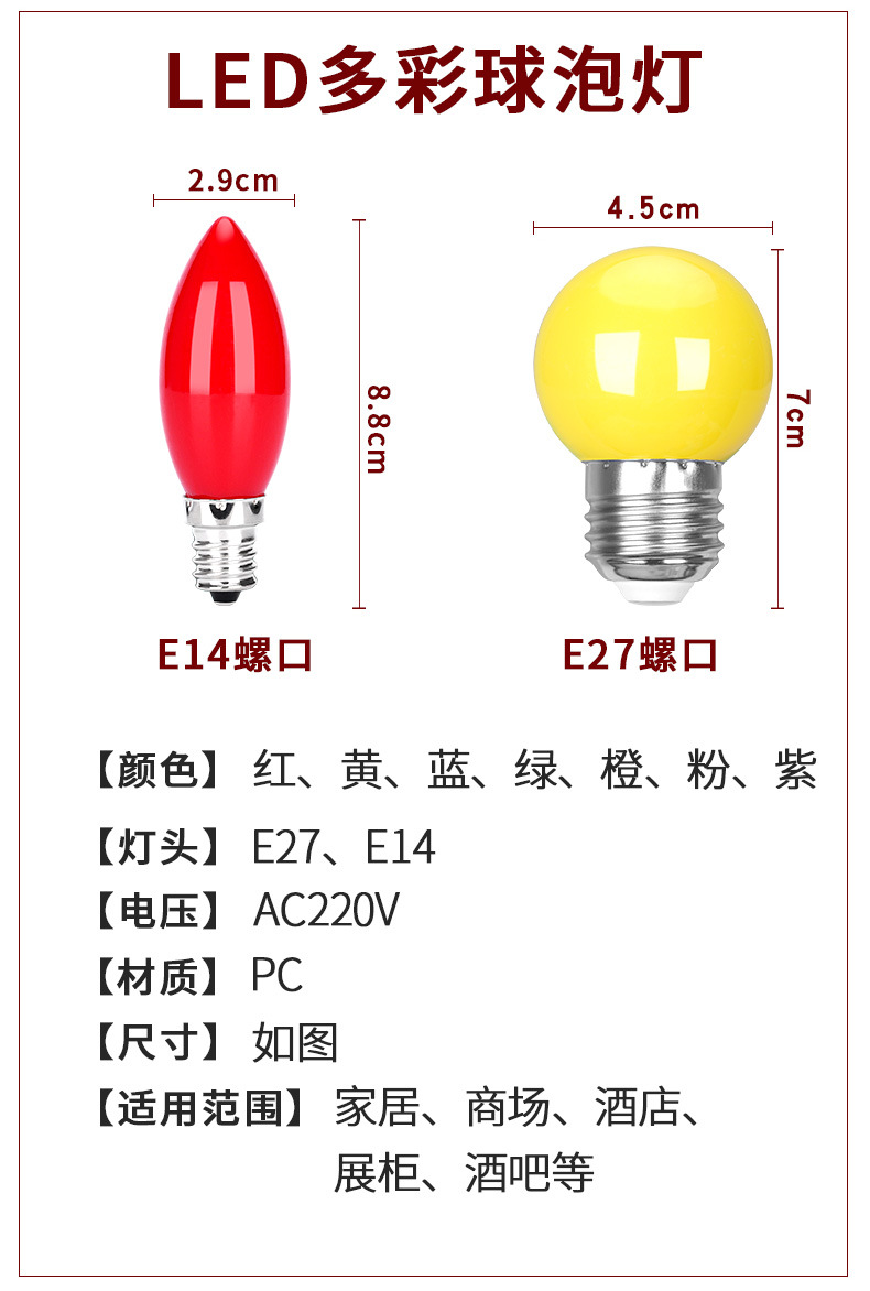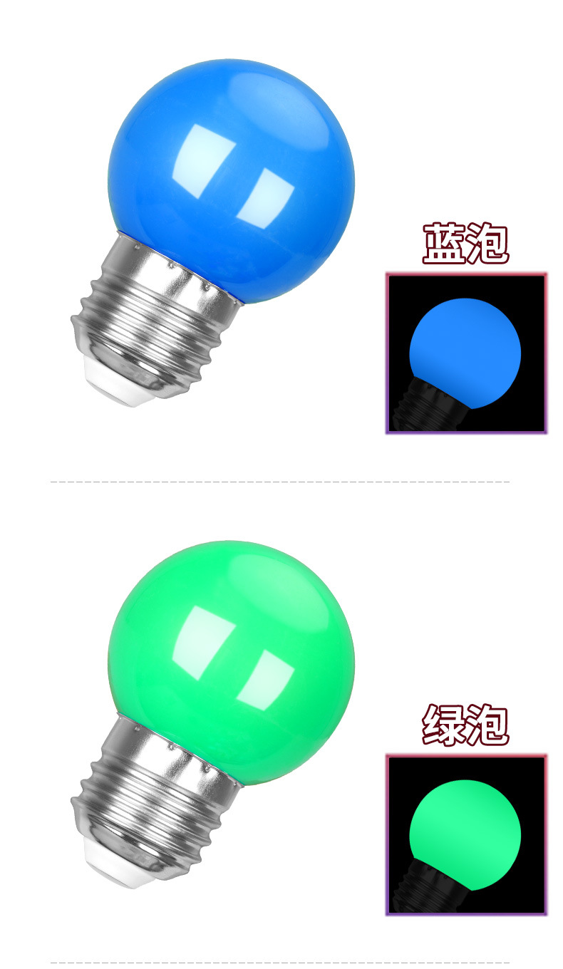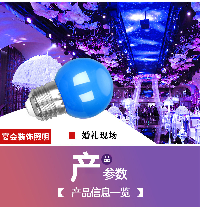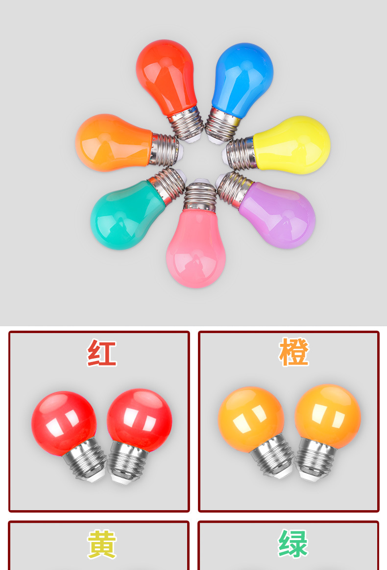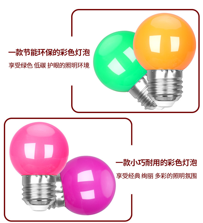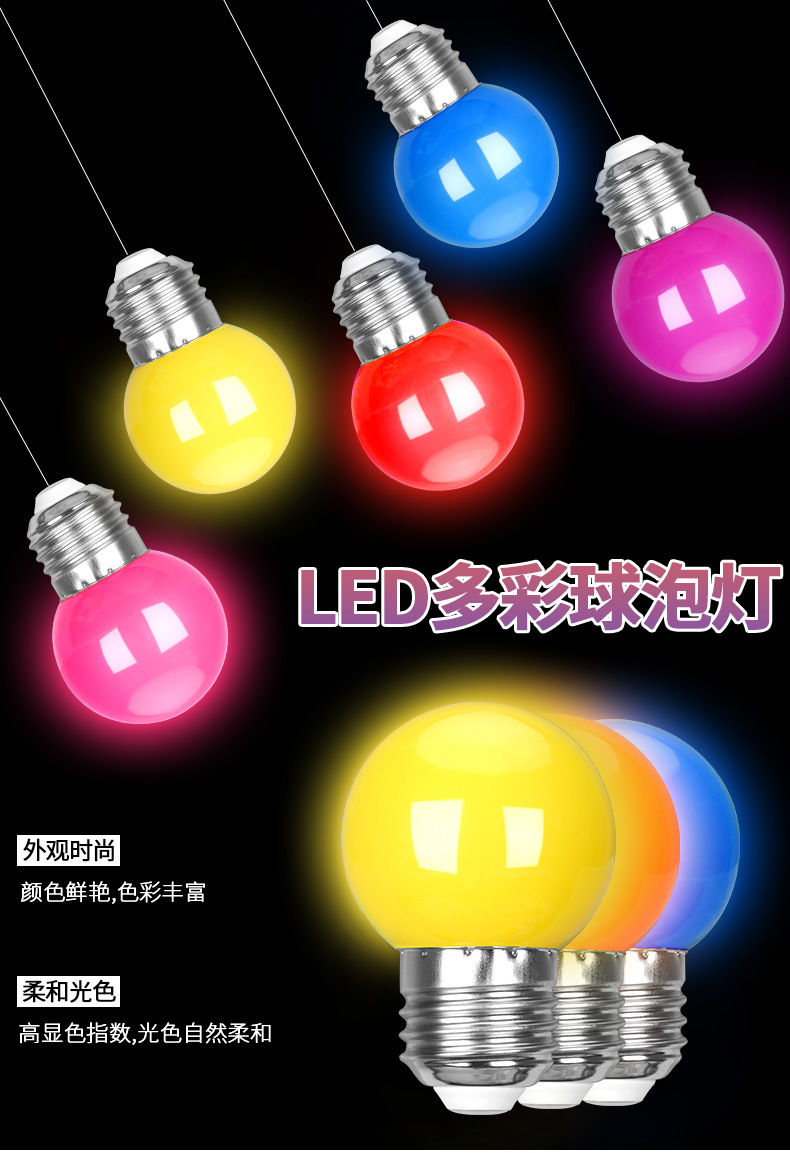 LED彩色E27螺口3W5W红橙黄绿白蓝紫室内户外家用装饰节能七彩灯泡