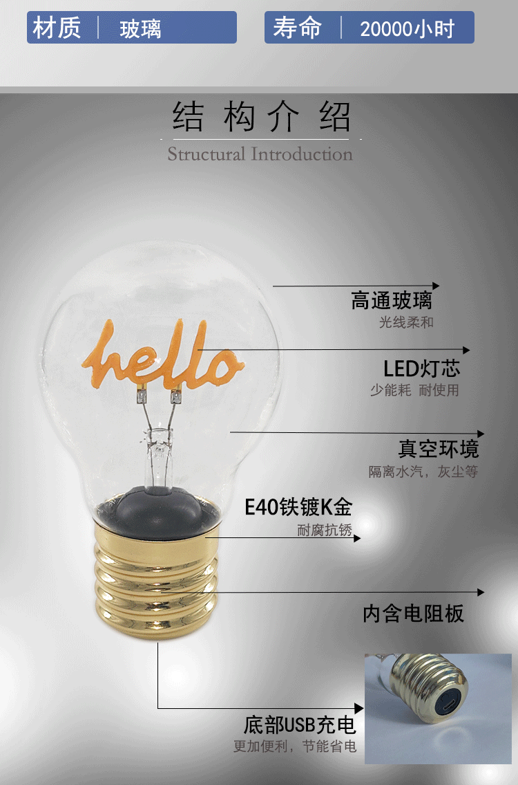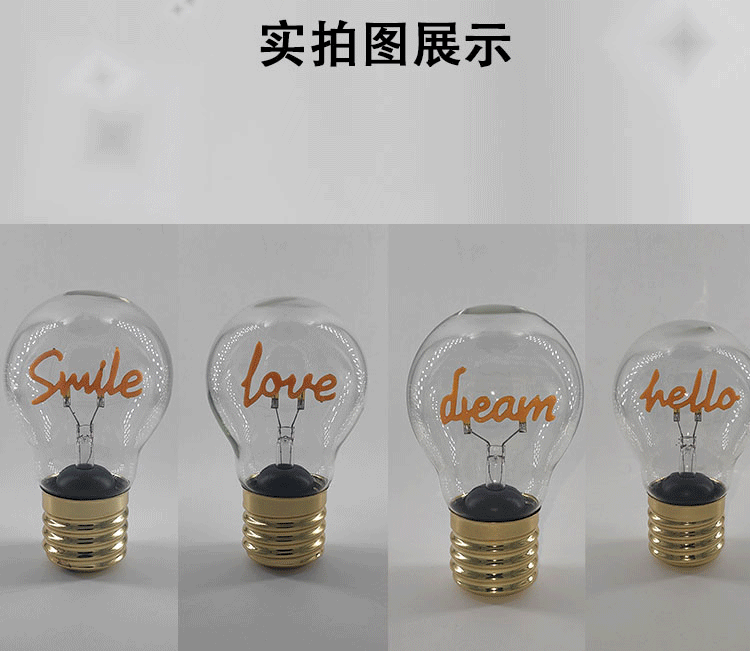 LED球泡厂家自产A70灯泡E40螺纹口USB充电款异形文字款灯丝球灯泡