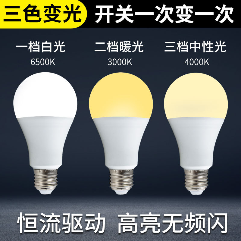 LED灯泡三色变光双色E27螺口球泡灯批发A19超亮110v220v节能恒流