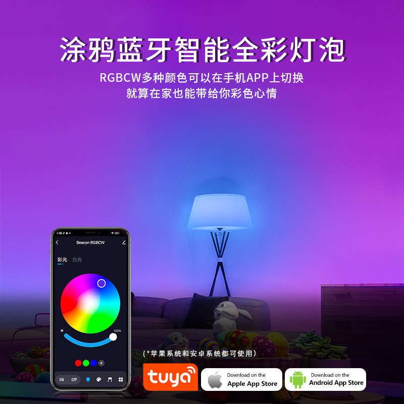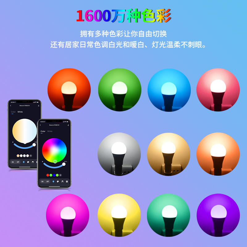 led智能灯泡app控制RGB球泡灯涂鸦 家用9W变色灯 E27蓝牙灯泡批发