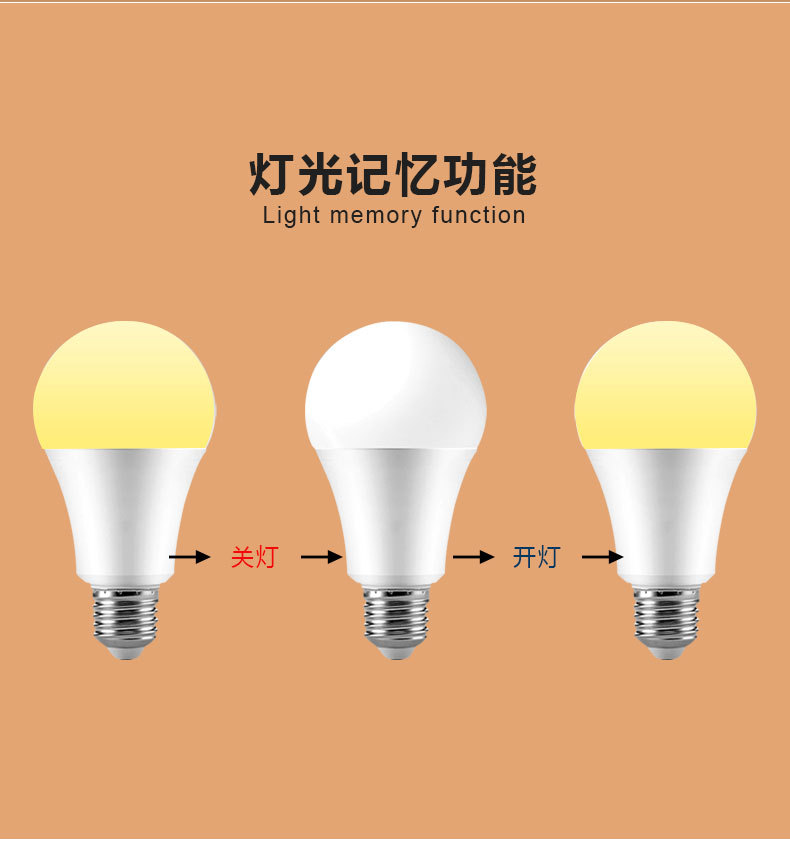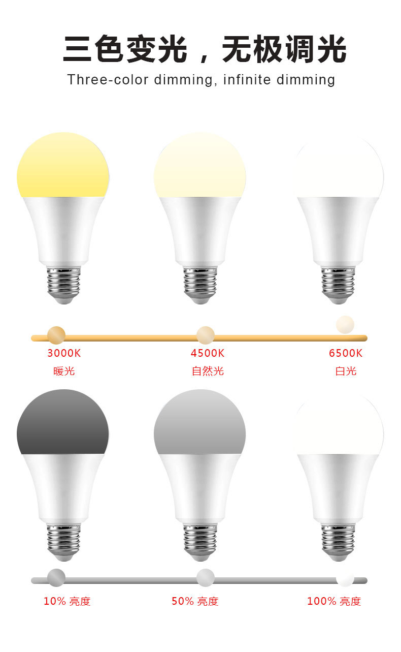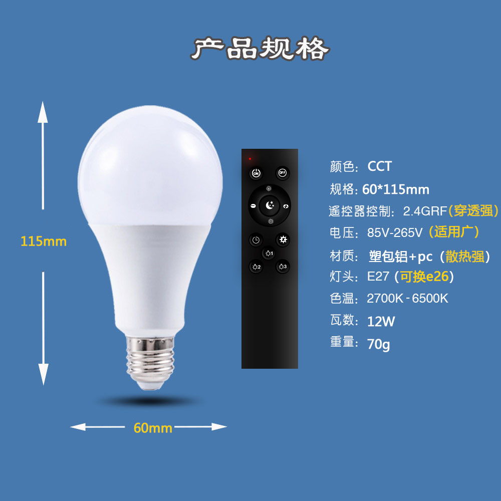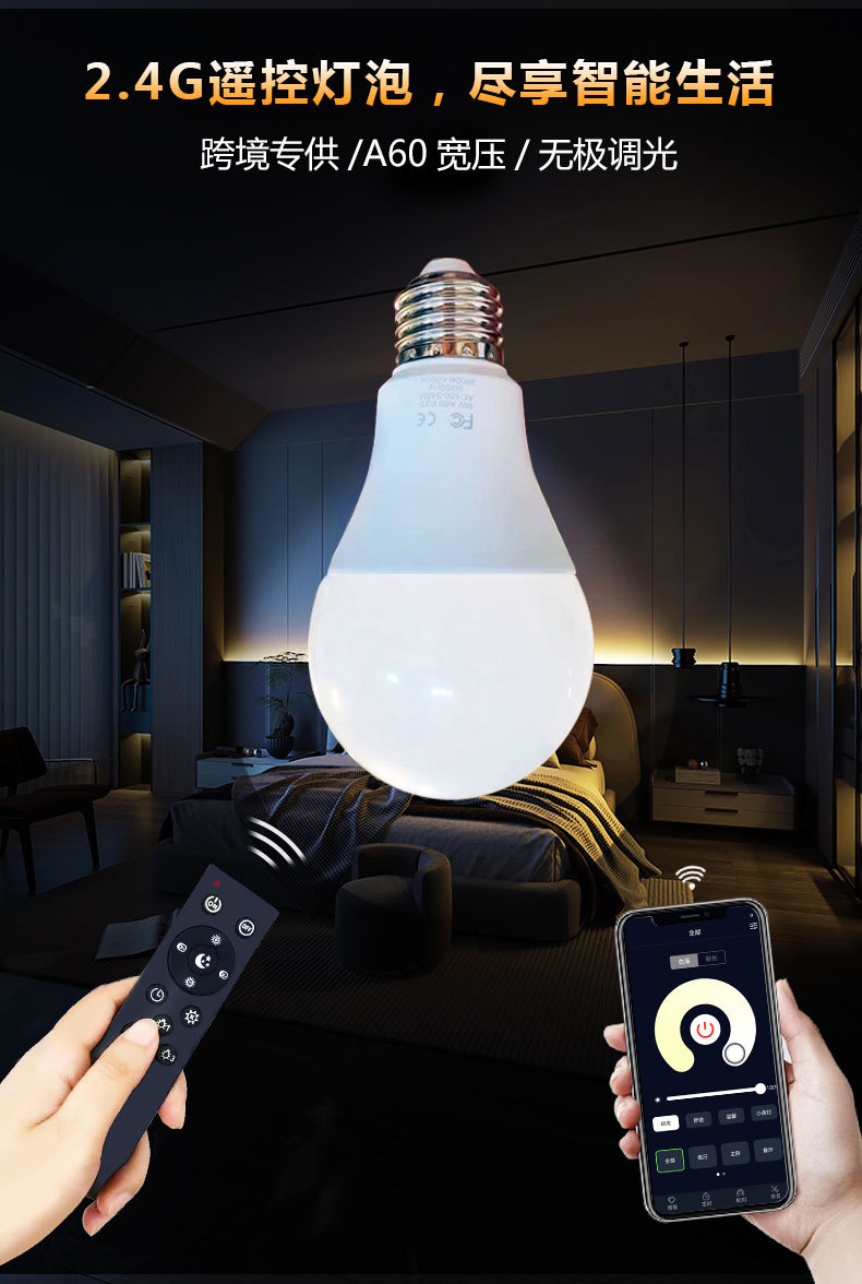 跨境2.4G智能灯泡遥控led无极调光调色三色变光球泡灯e26e27螺口