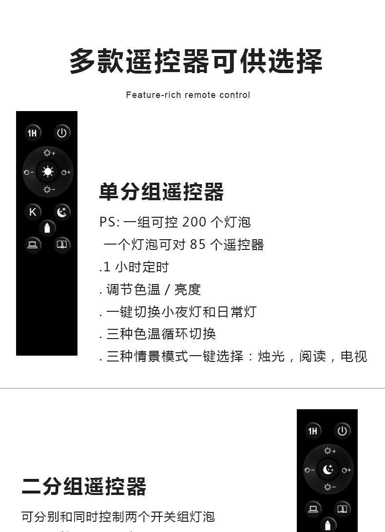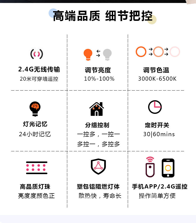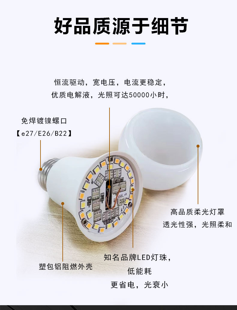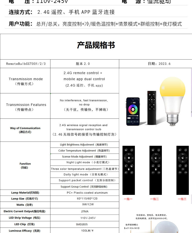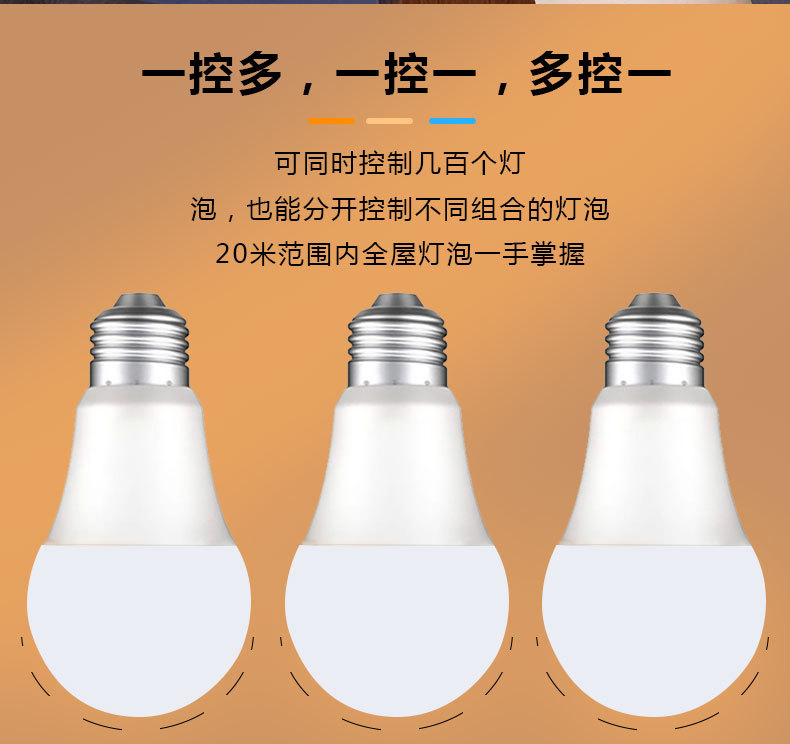 跨境2.4G智能灯泡遥控led无极调光调色三色变光球泡灯e26e27螺口