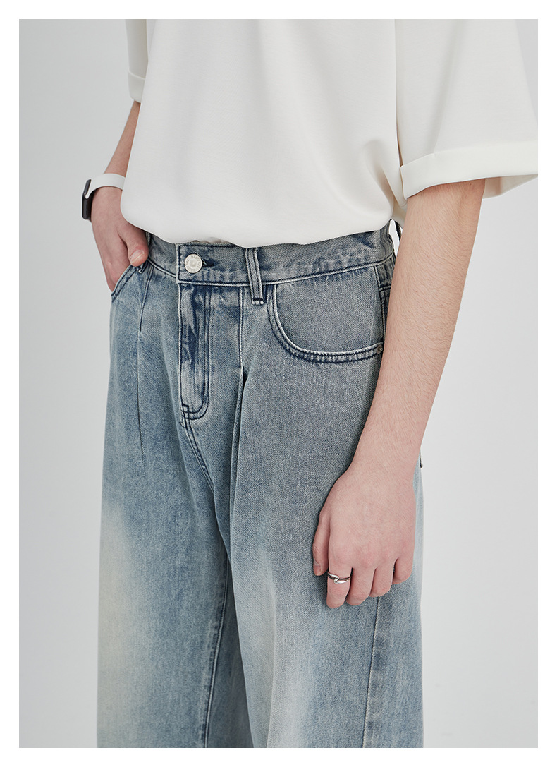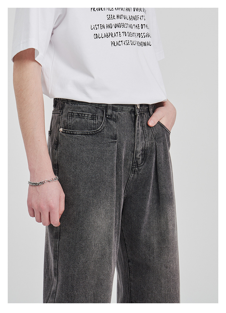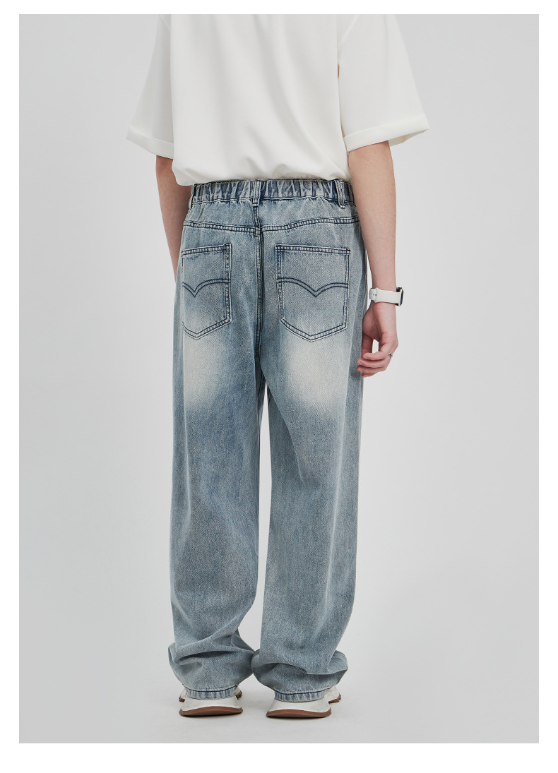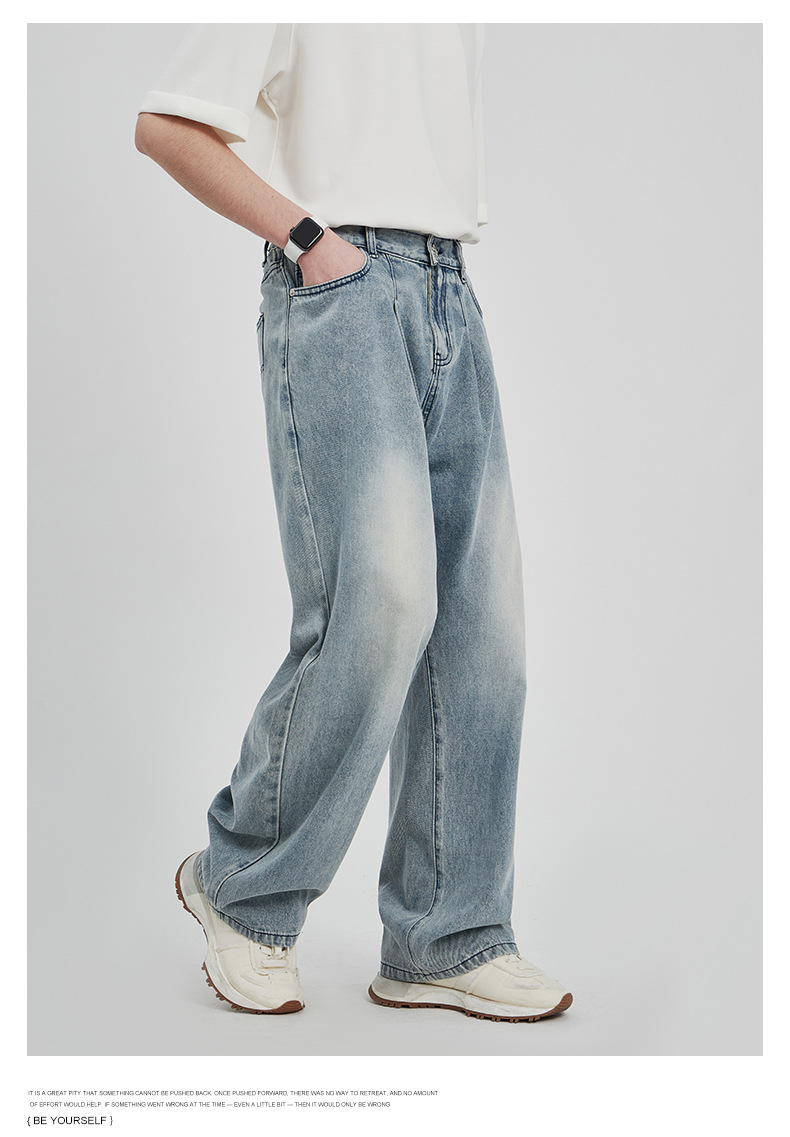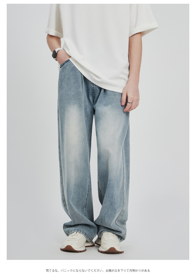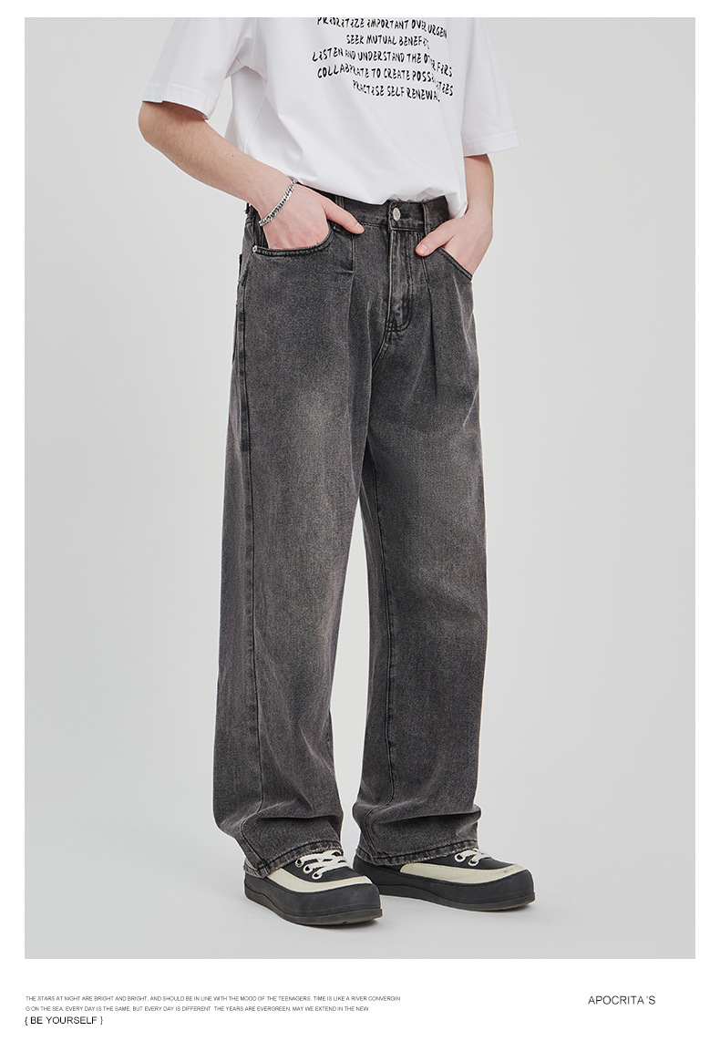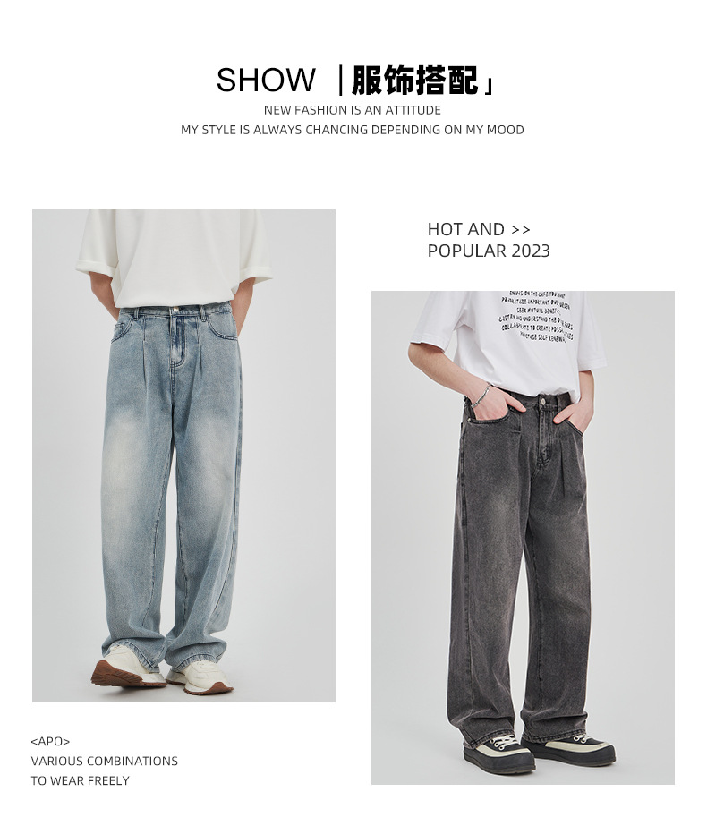 APO男装|素男极简水洗牛仔裤男2024春夏潮流直筒阔腿美式宽松裤子