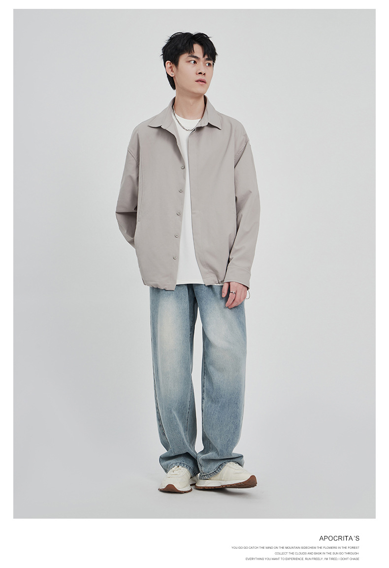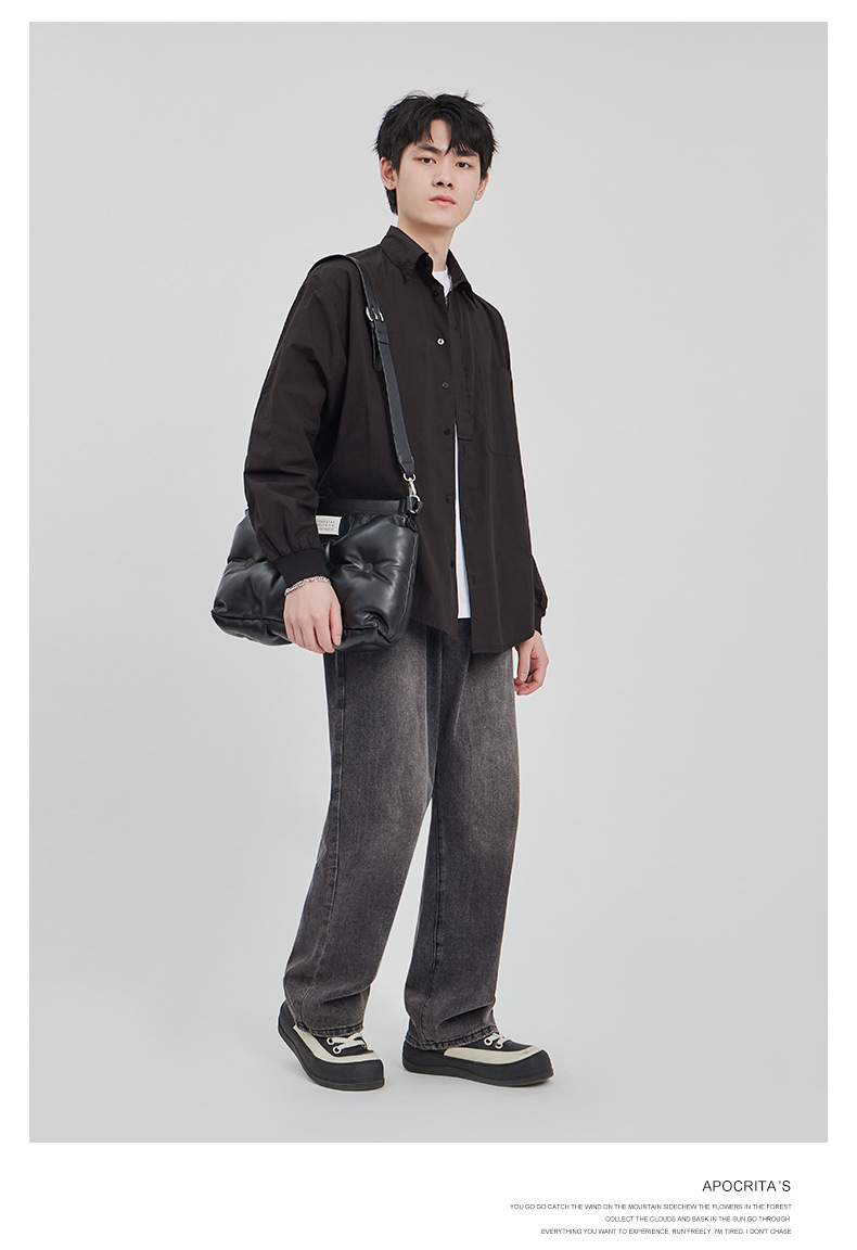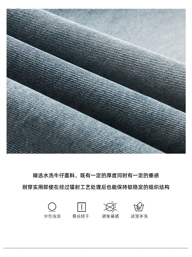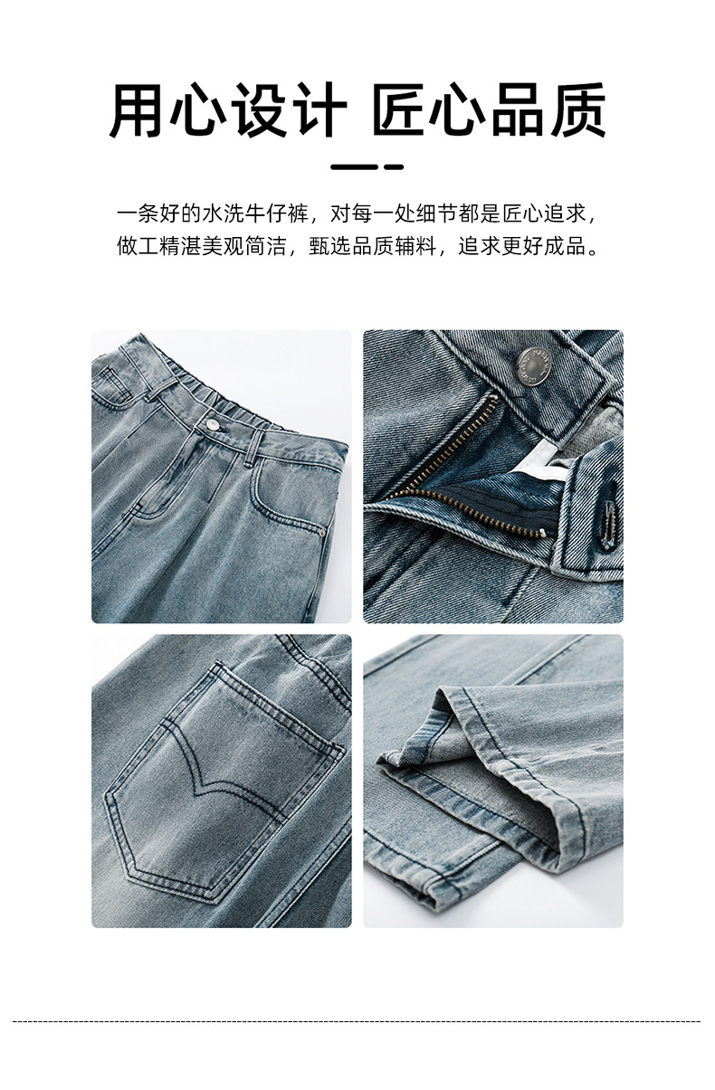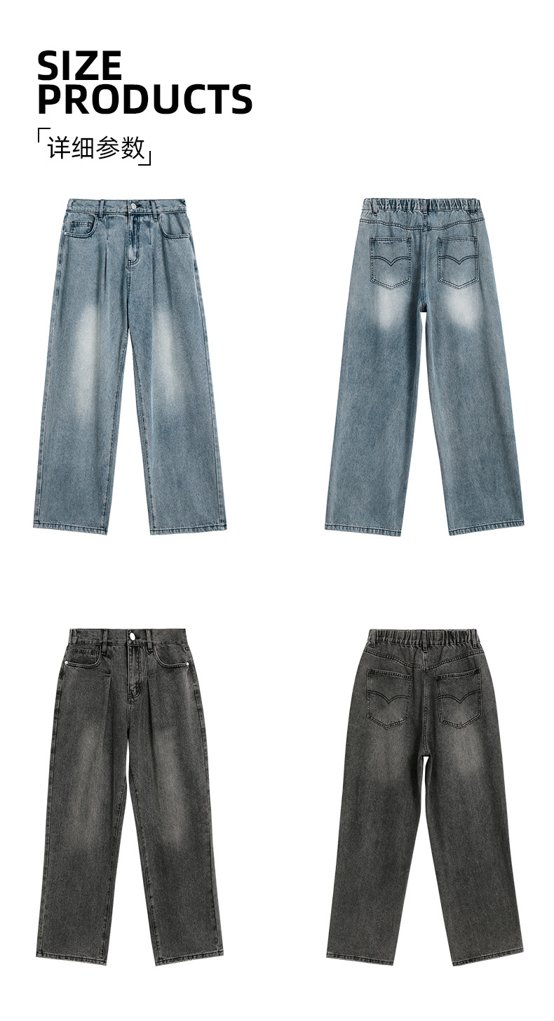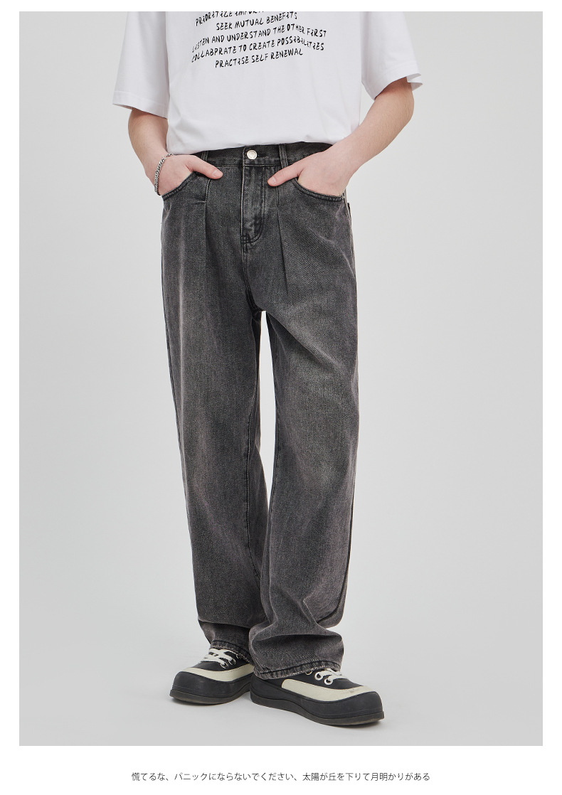APO男装|素男极简水洗牛仔裤男2024春夏潮流直筒阔腿美式宽松裤子