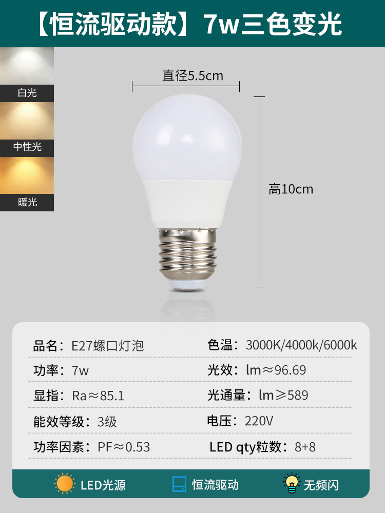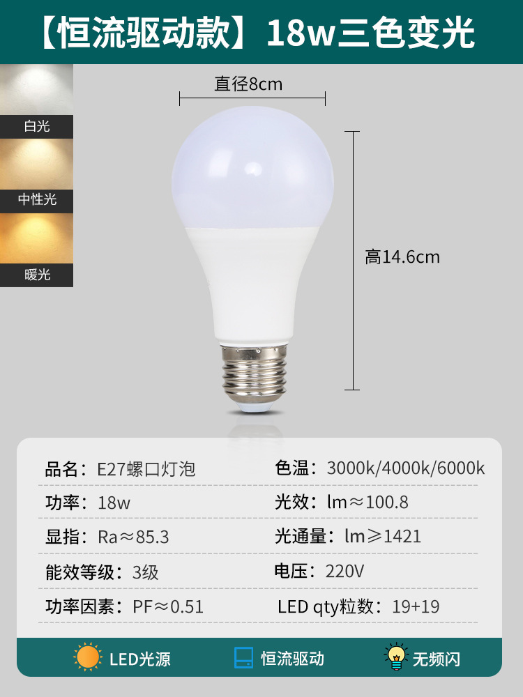 LED灯泡超亮e27大螺口球泡暖三色变光节能护眼光源G80图800*800