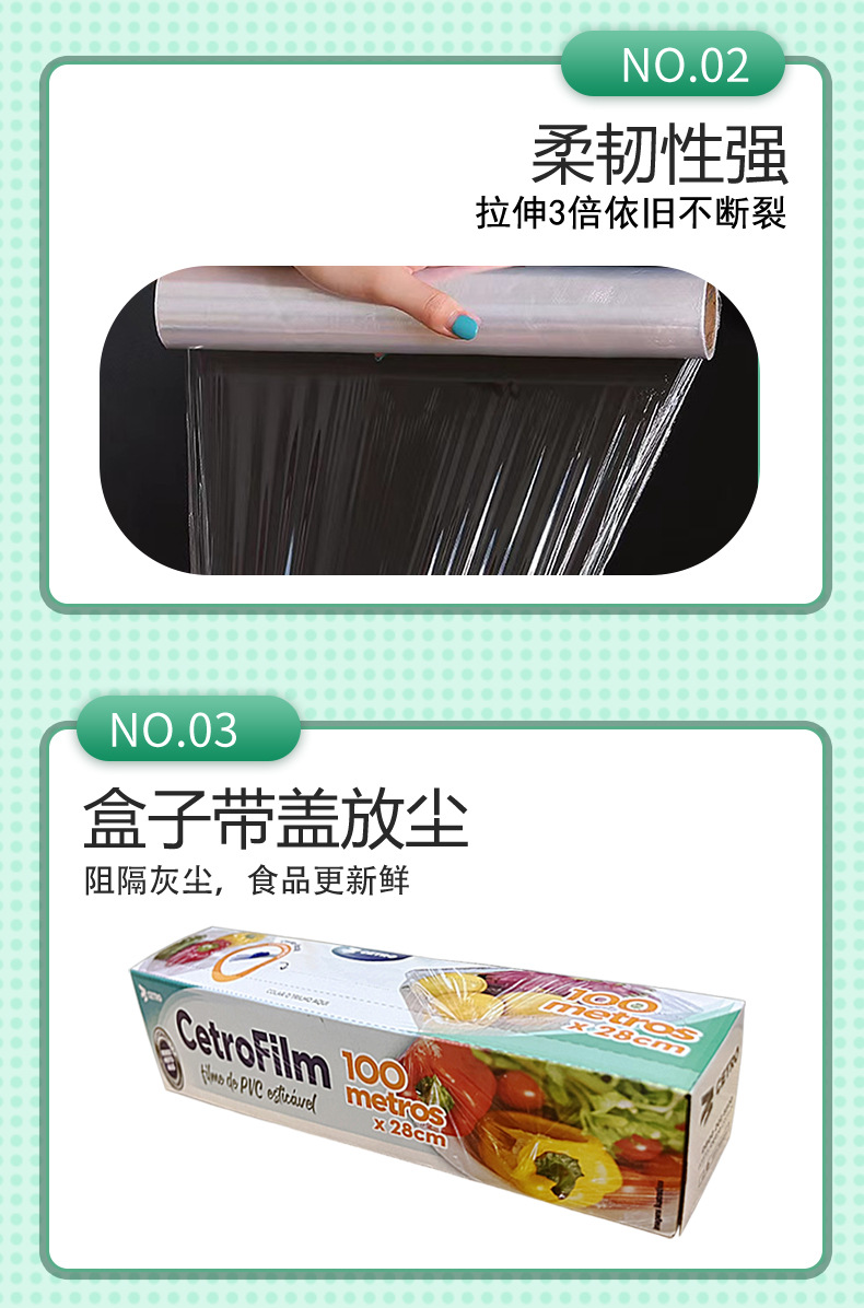 保鲜膜家用英文版盒装厨房食品大卷滑刀切割批发食品级耐高温冷藏