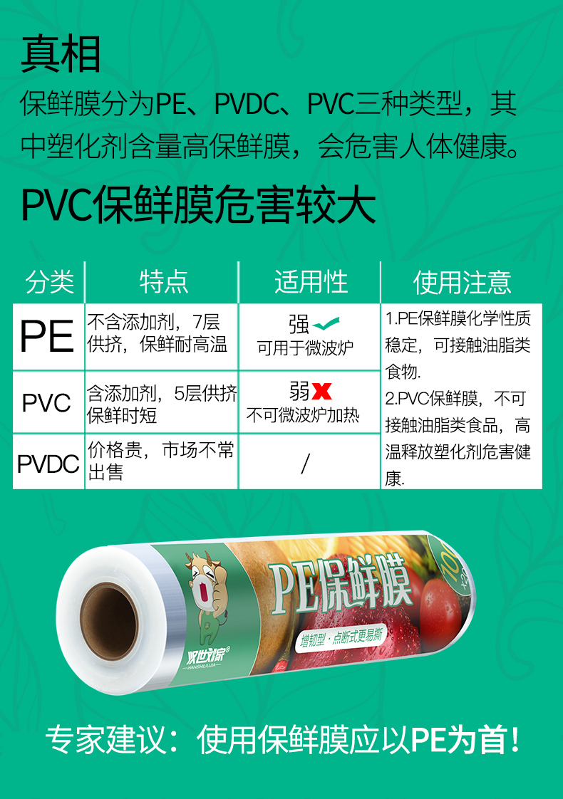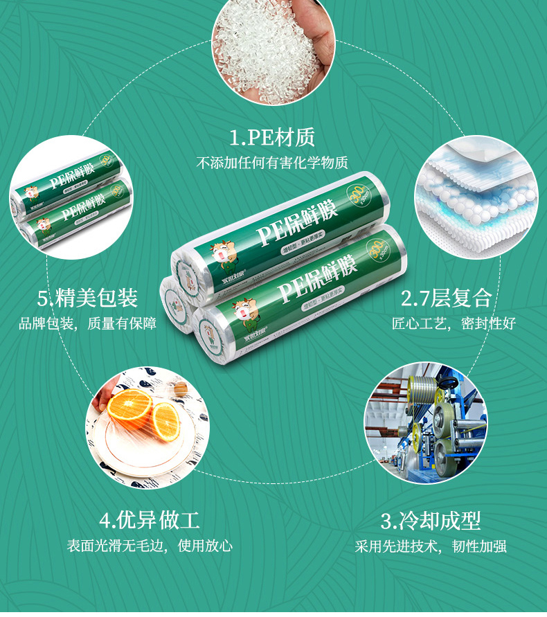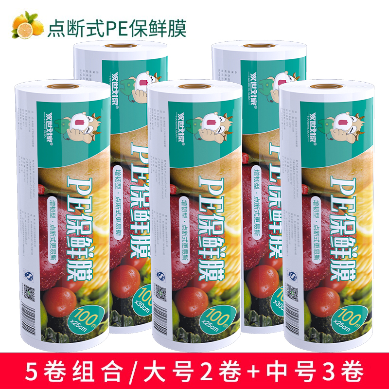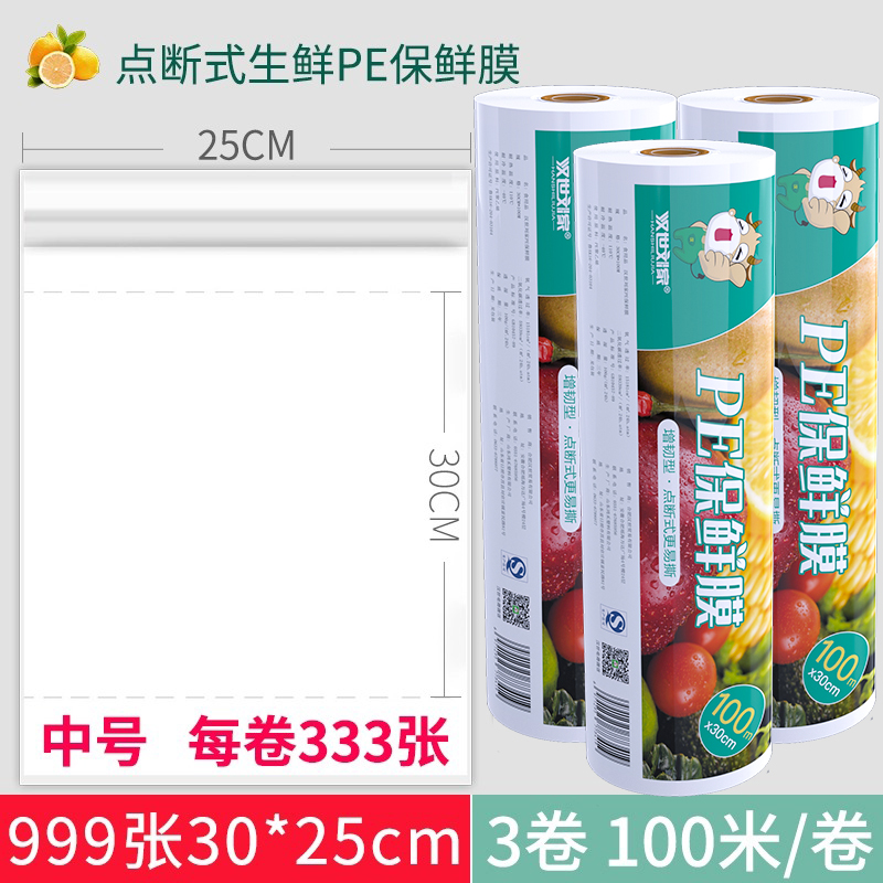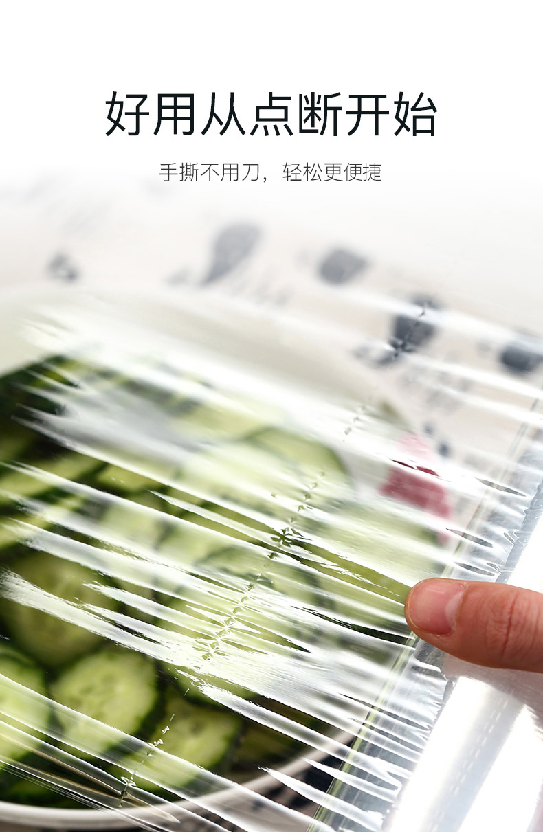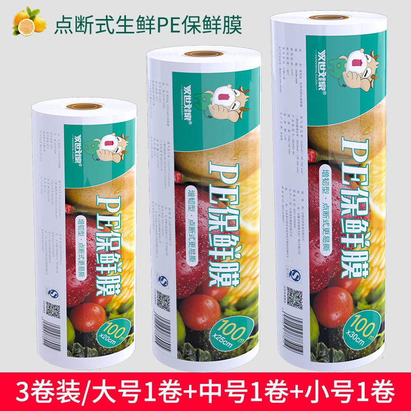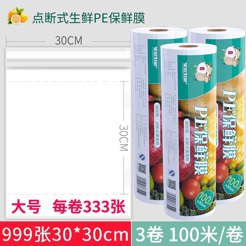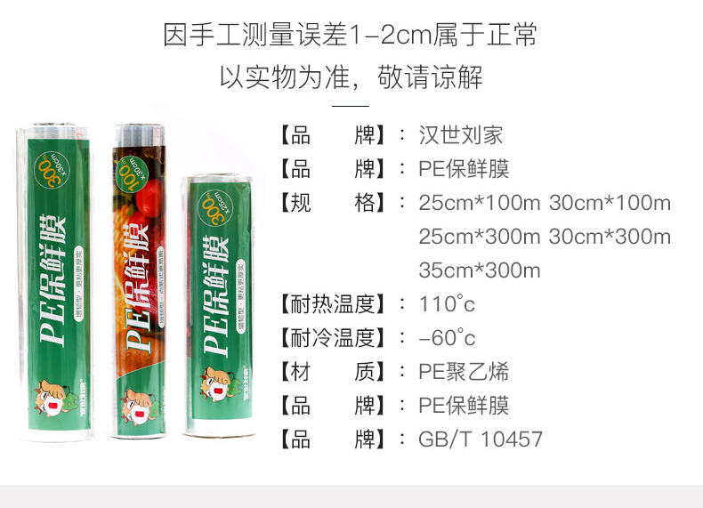 汉世刘家食品pe保鲜膜耐高温家用经济装商用大卷点断式美容院专用
