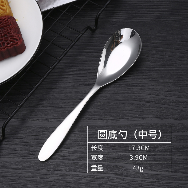 304不锈钢平底勺中式家用吃饭喝汤勺子加厚食品级儿童勺圆勺餐具
