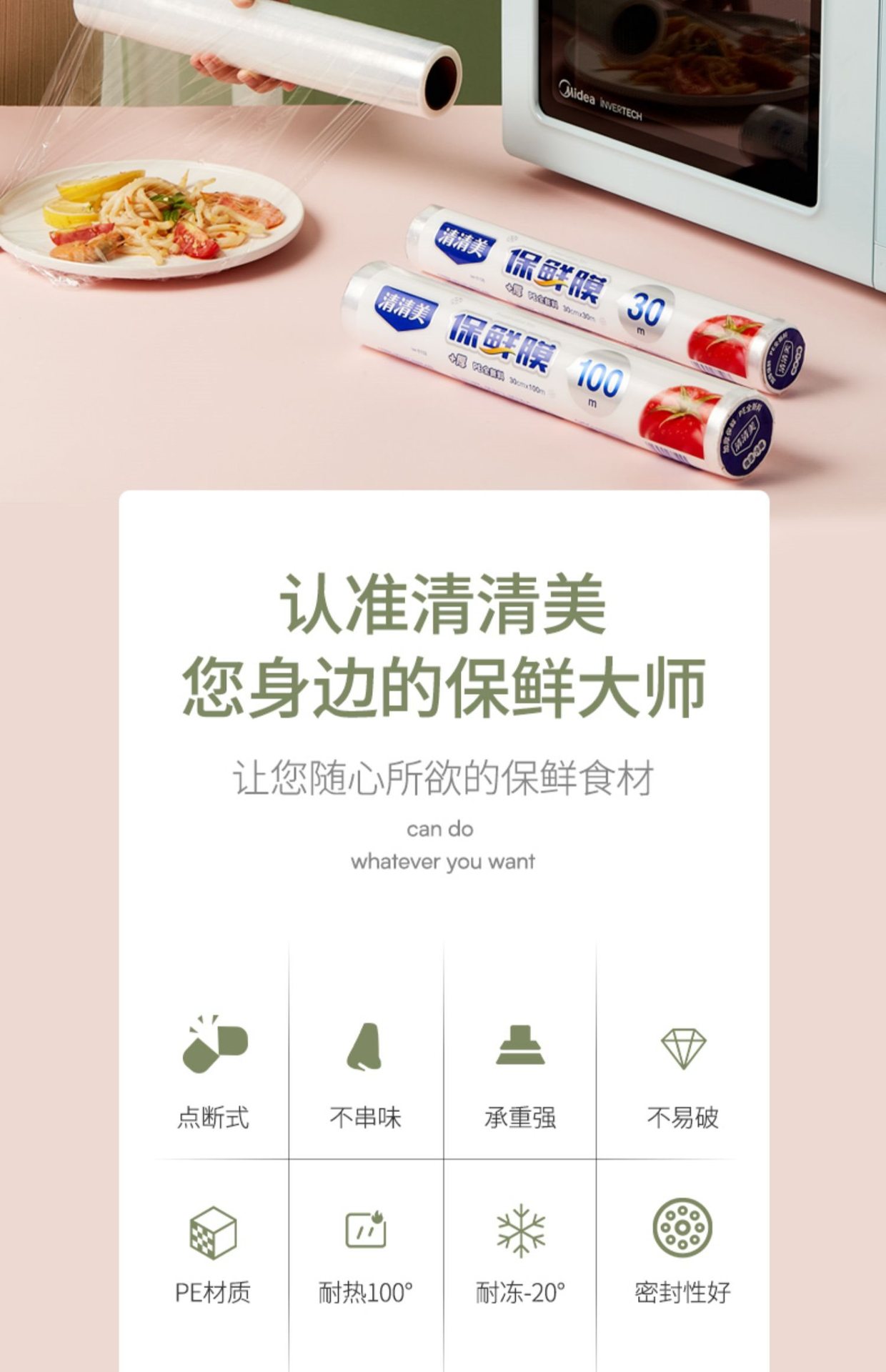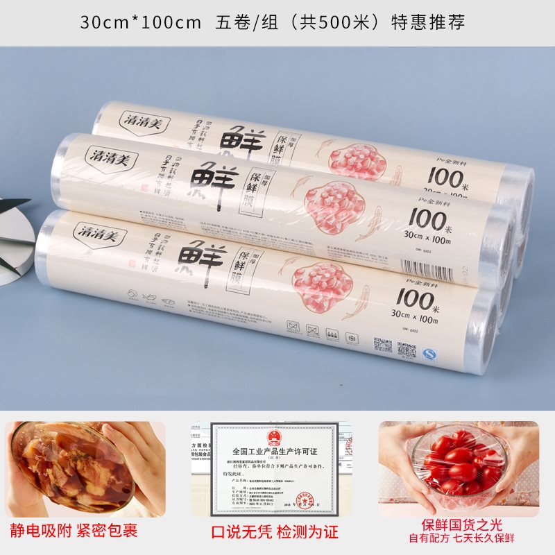 保鲜膜大卷家用pe食品级微波炉耐高温家用厨房经济装美容院商用
