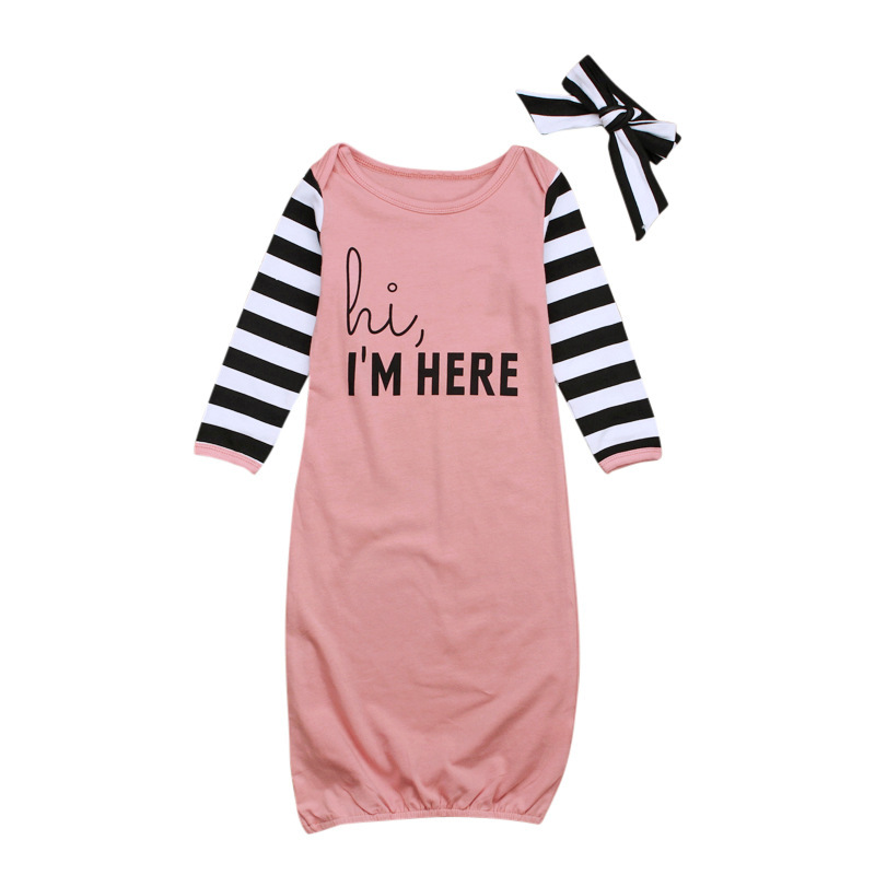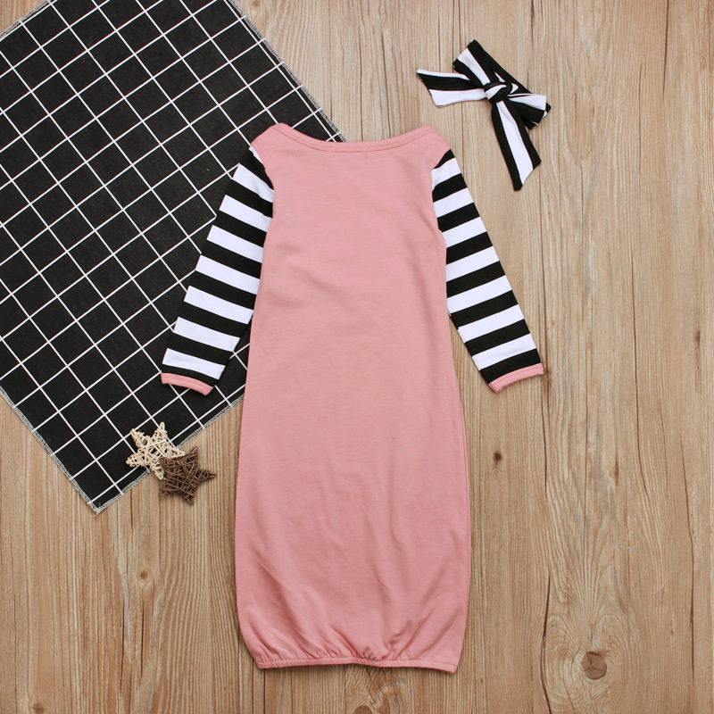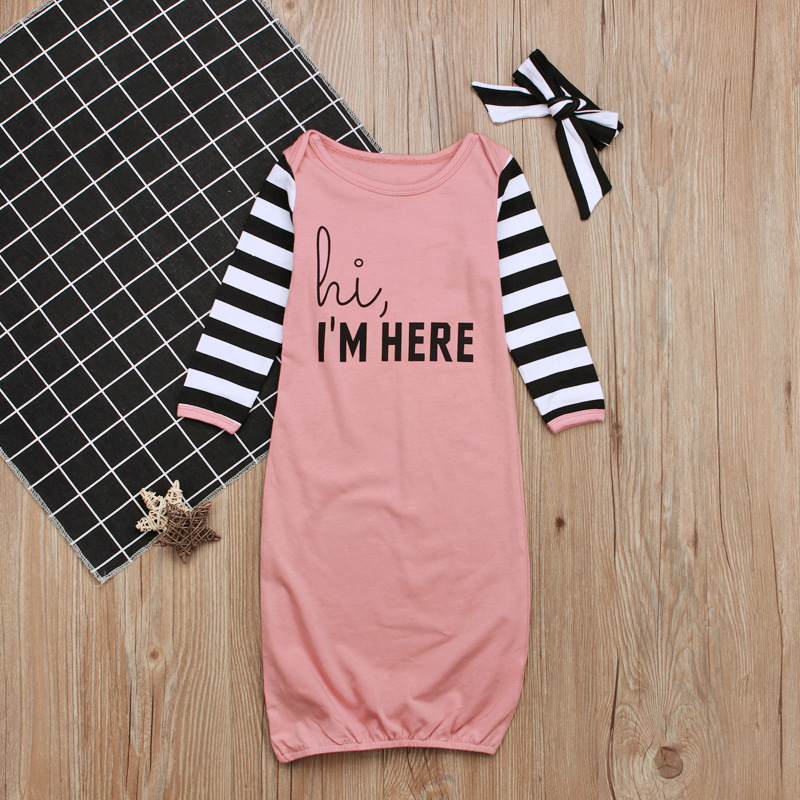 女儿童欧美 长袖英文字母条纹婴儿睡袋+头巾两件套空调防踢被 ins