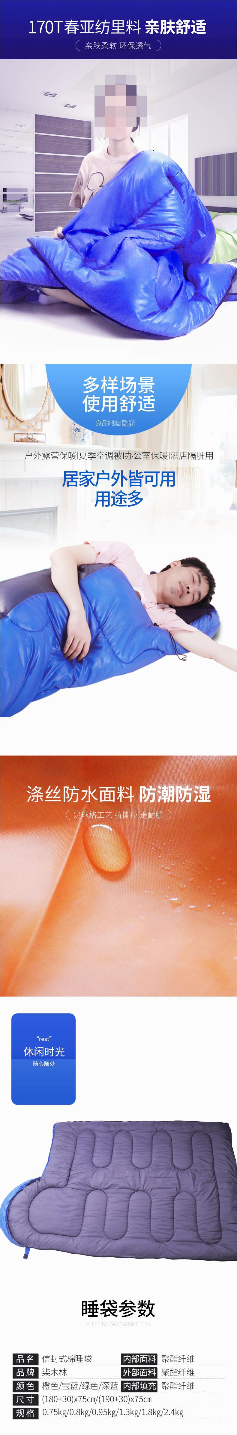 加厚睡袋秋冬户外午休棉睡袋便携野外露营成人防寒保暖睡袋信封式