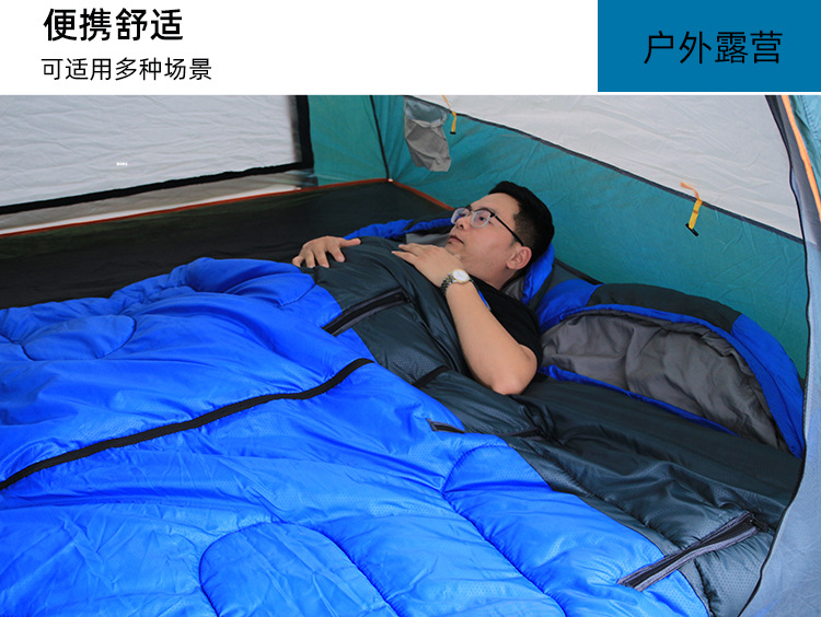 冬季防寒睡袋大人户外露营加厚单人成人室内信封式双人四季棉睡琼