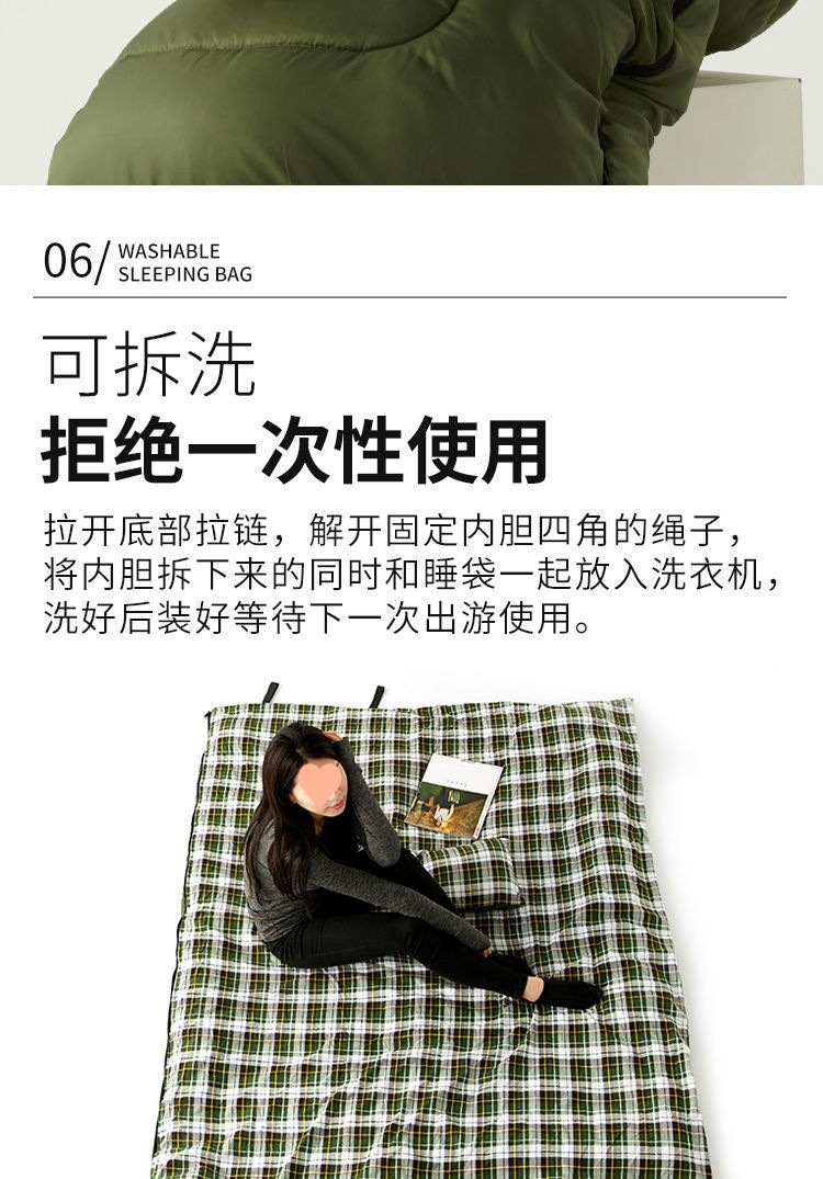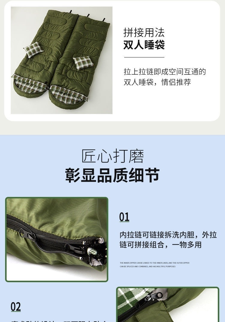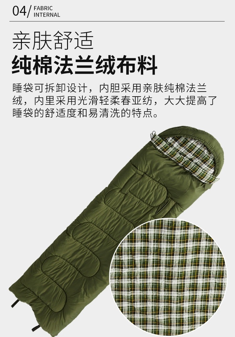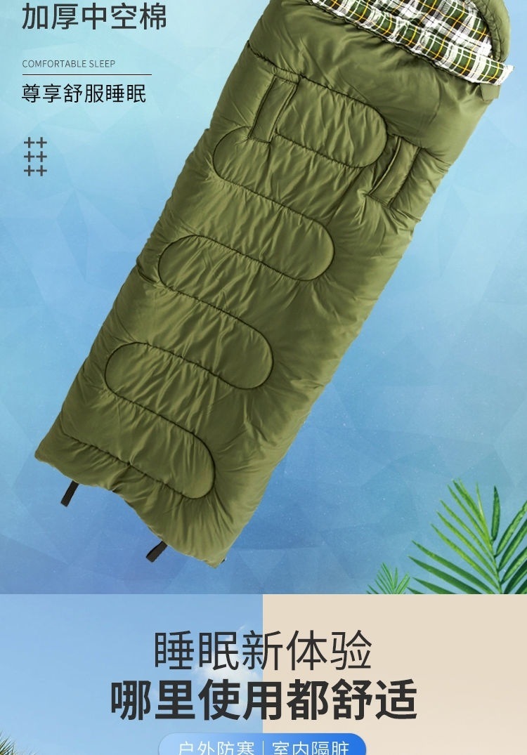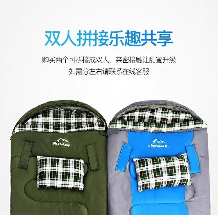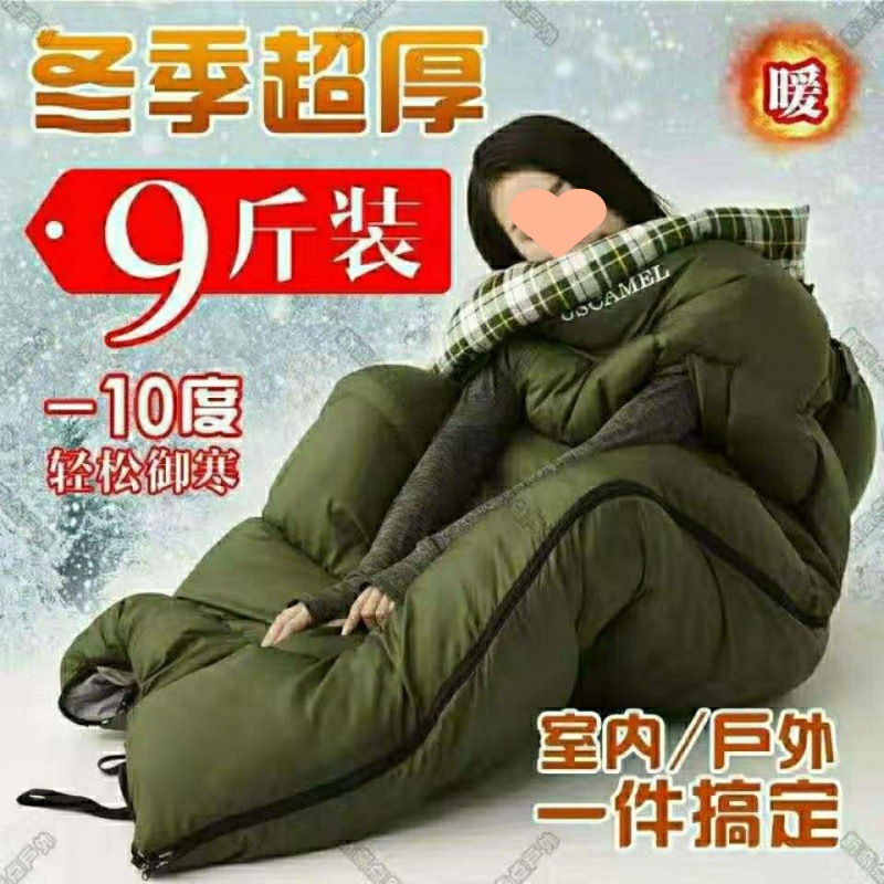 W骆睡袋成人冬季加厚户外防寒旅游纯棉保暖便携室内露营单双人