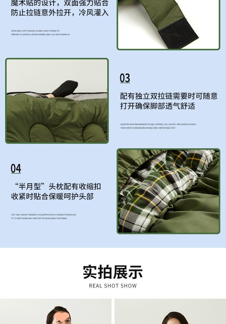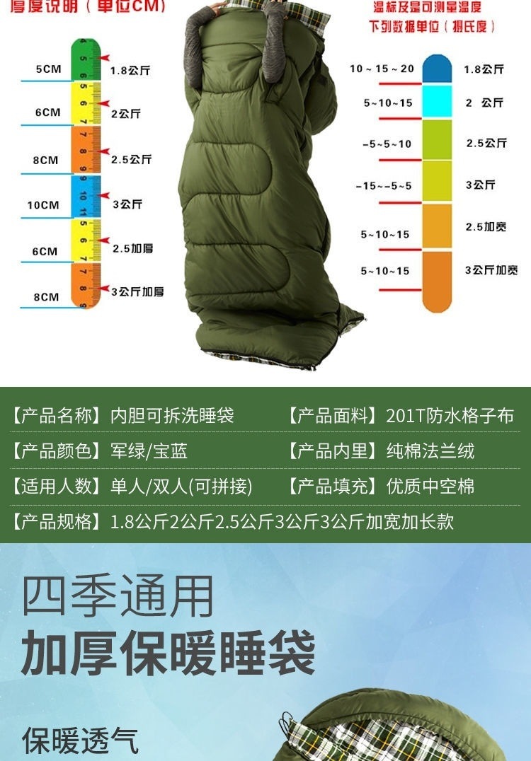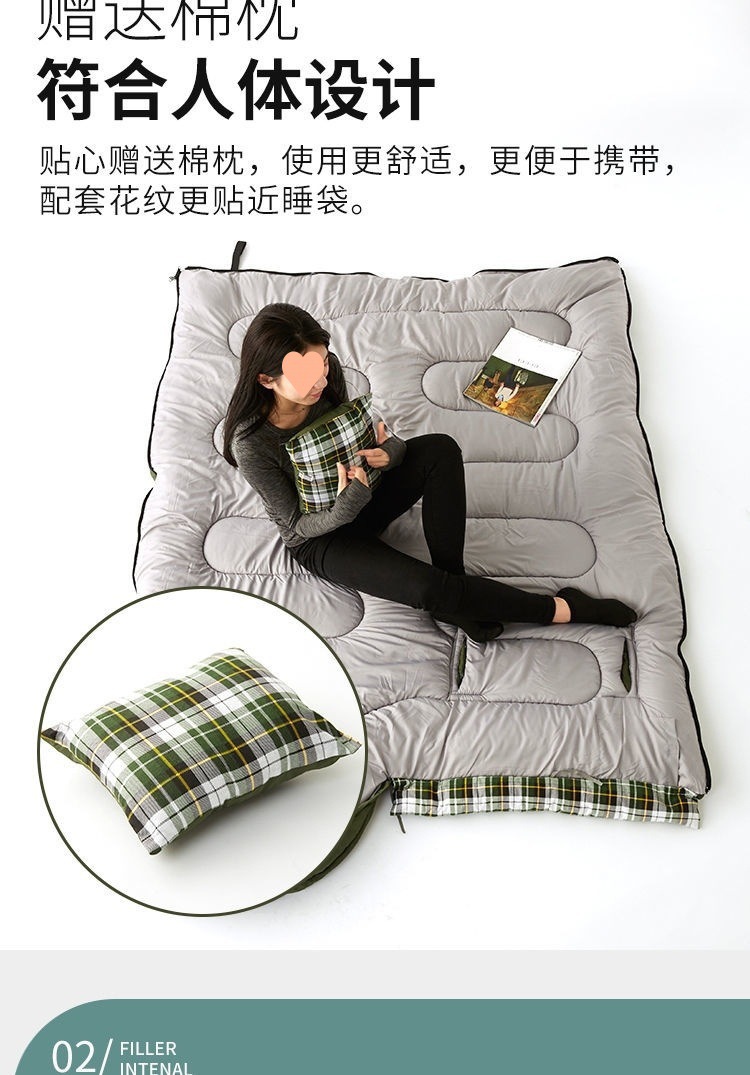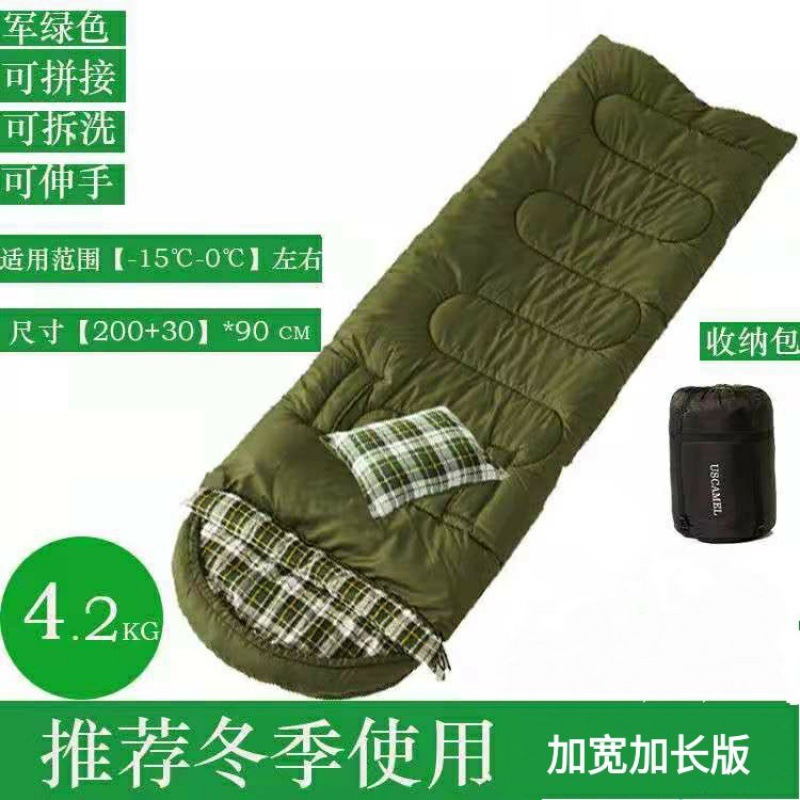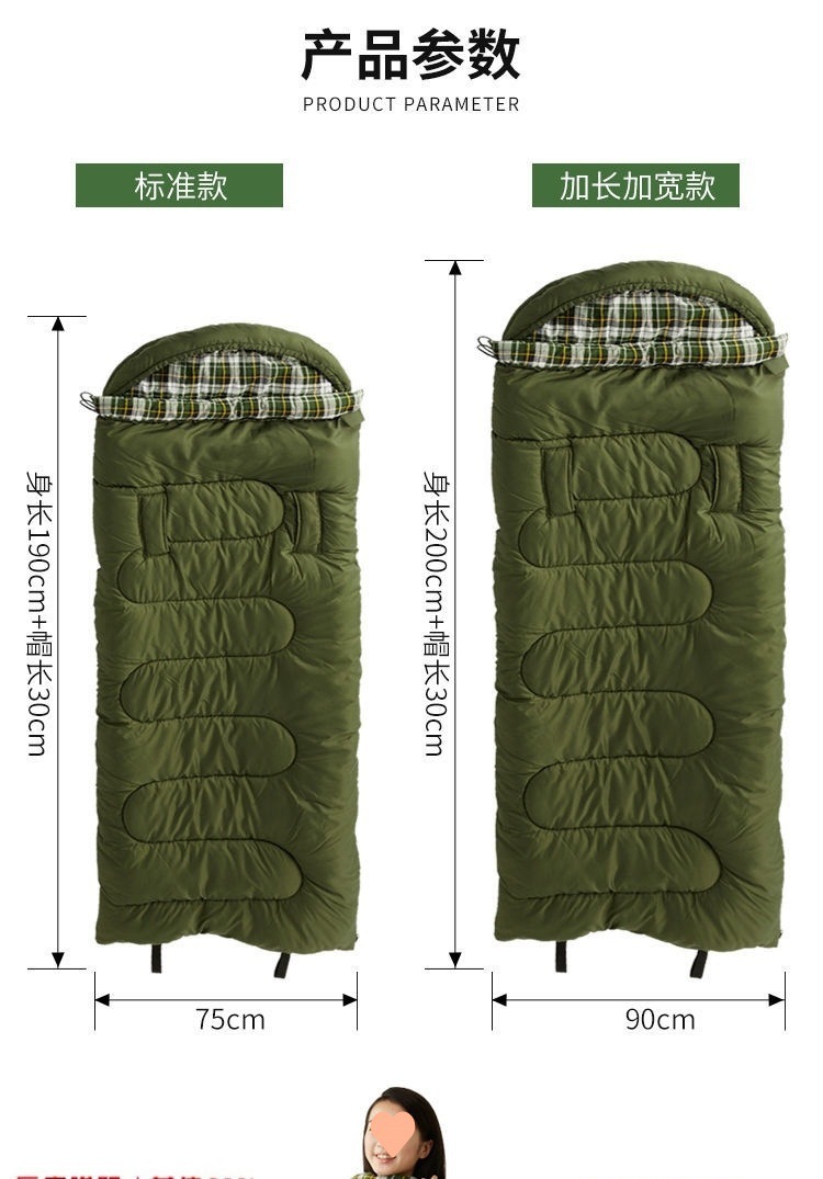 W骆睡袋成人冬季加厚户外防寒旅游纯棉保暖便携室内露营单双人