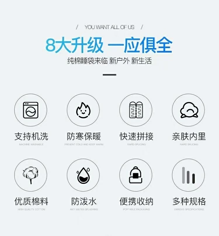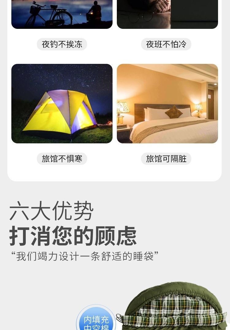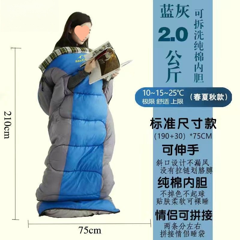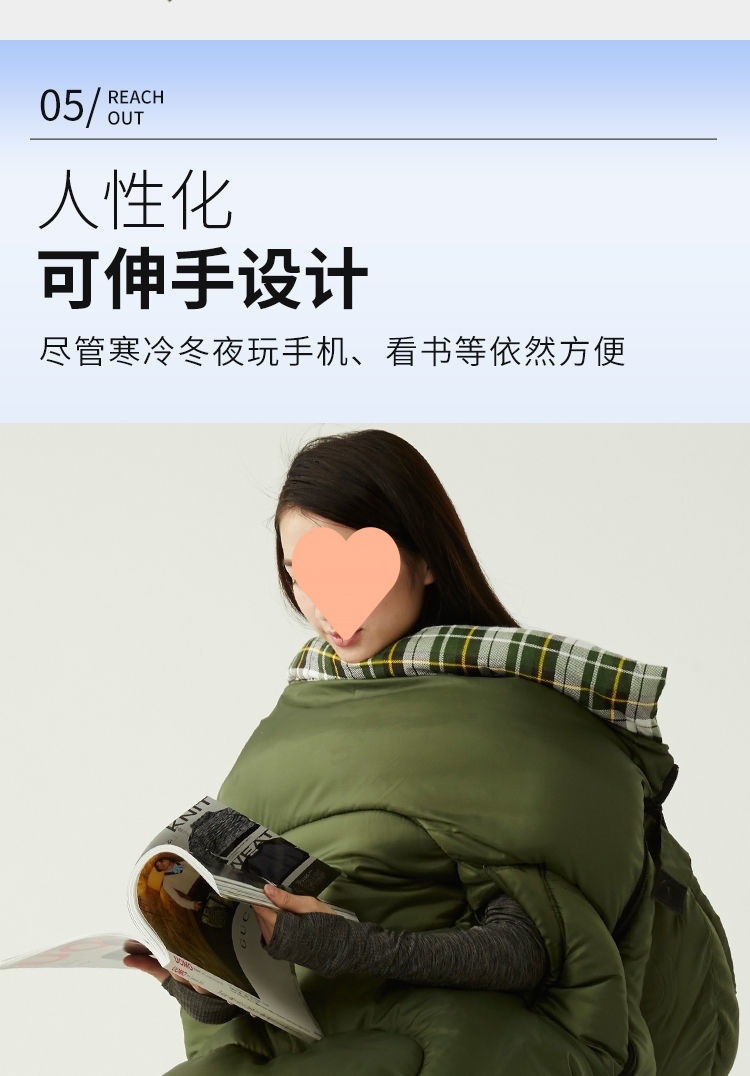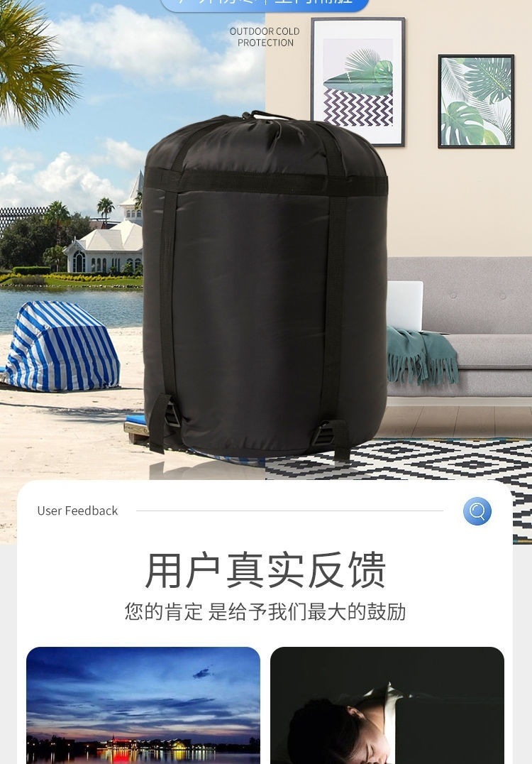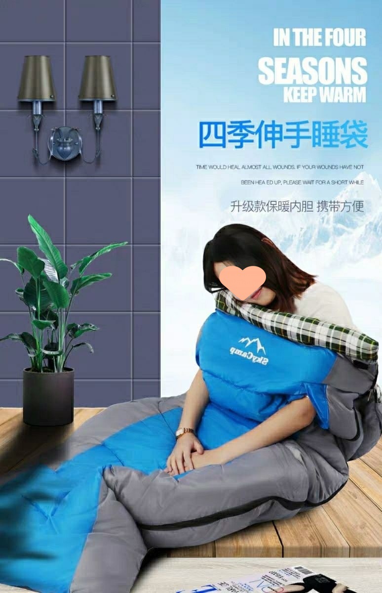 W骆睡袋成人冬季加厚户外防寒旅游纯棉保暖便携室内露营单双人