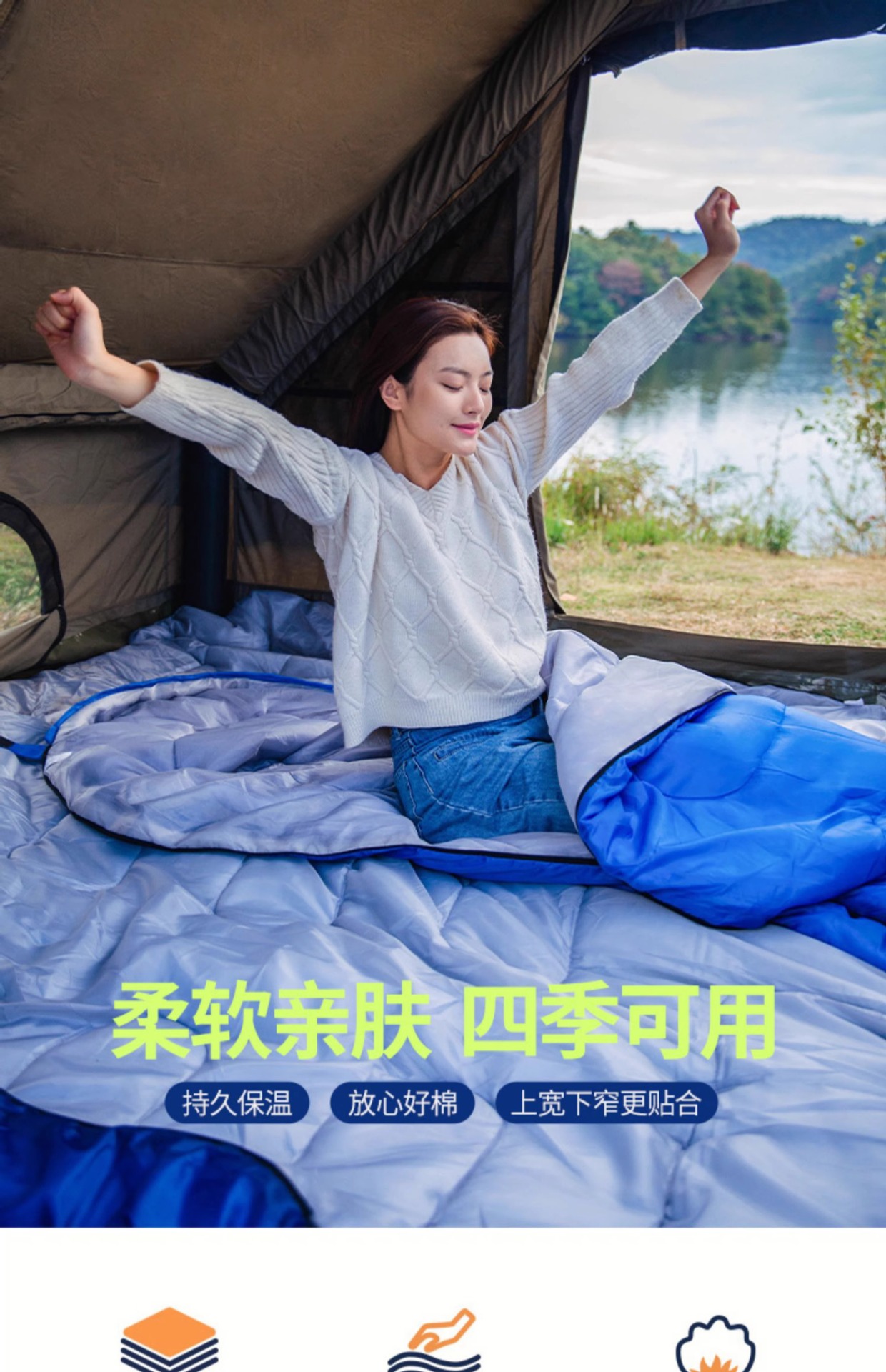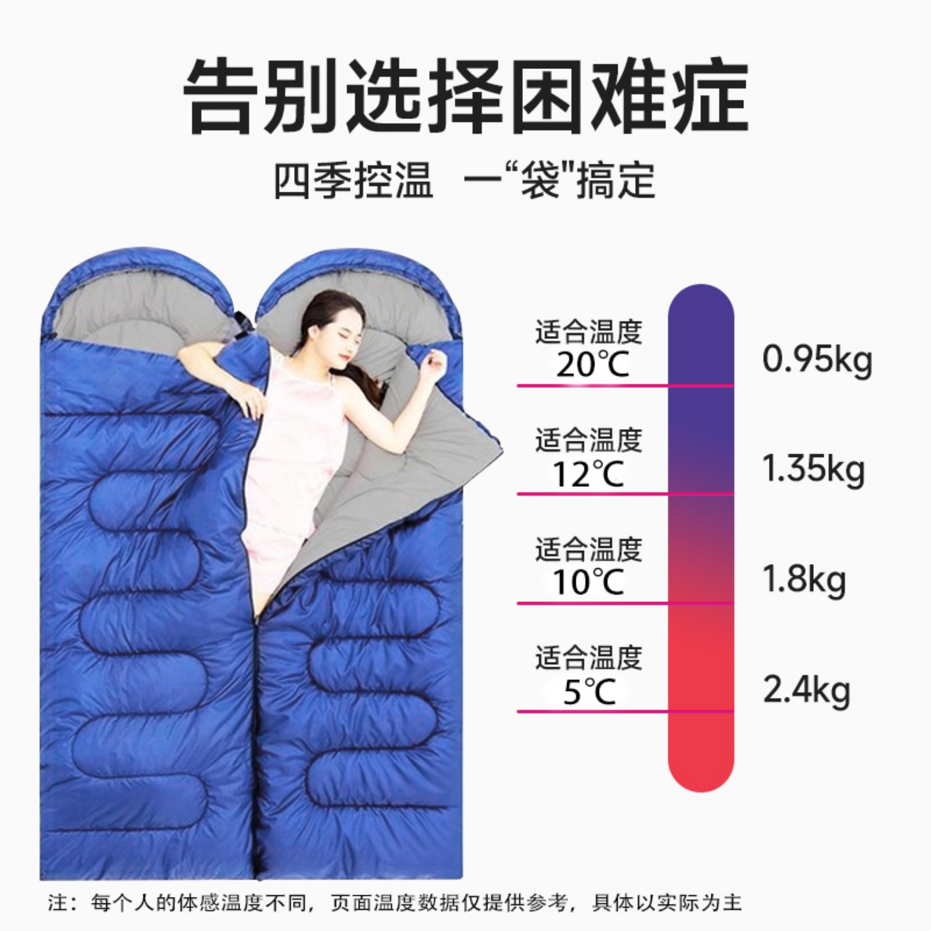 户外睡袋成人信封式可携式露营睡袋加厚防寒秋冬办公室午休保暖树