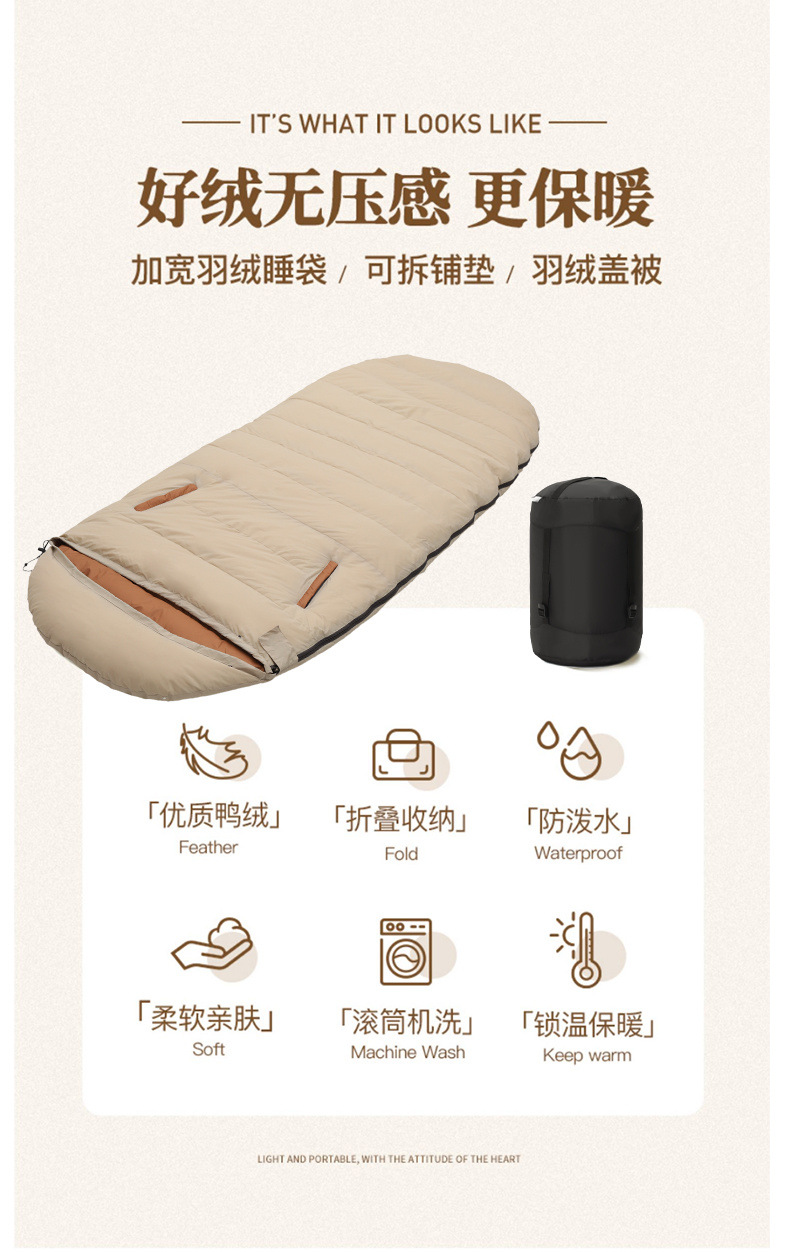 gew可拆洗羽绒睡袋成人秋冬款户外露营旅行便携睡袋加厚鹅绒防水