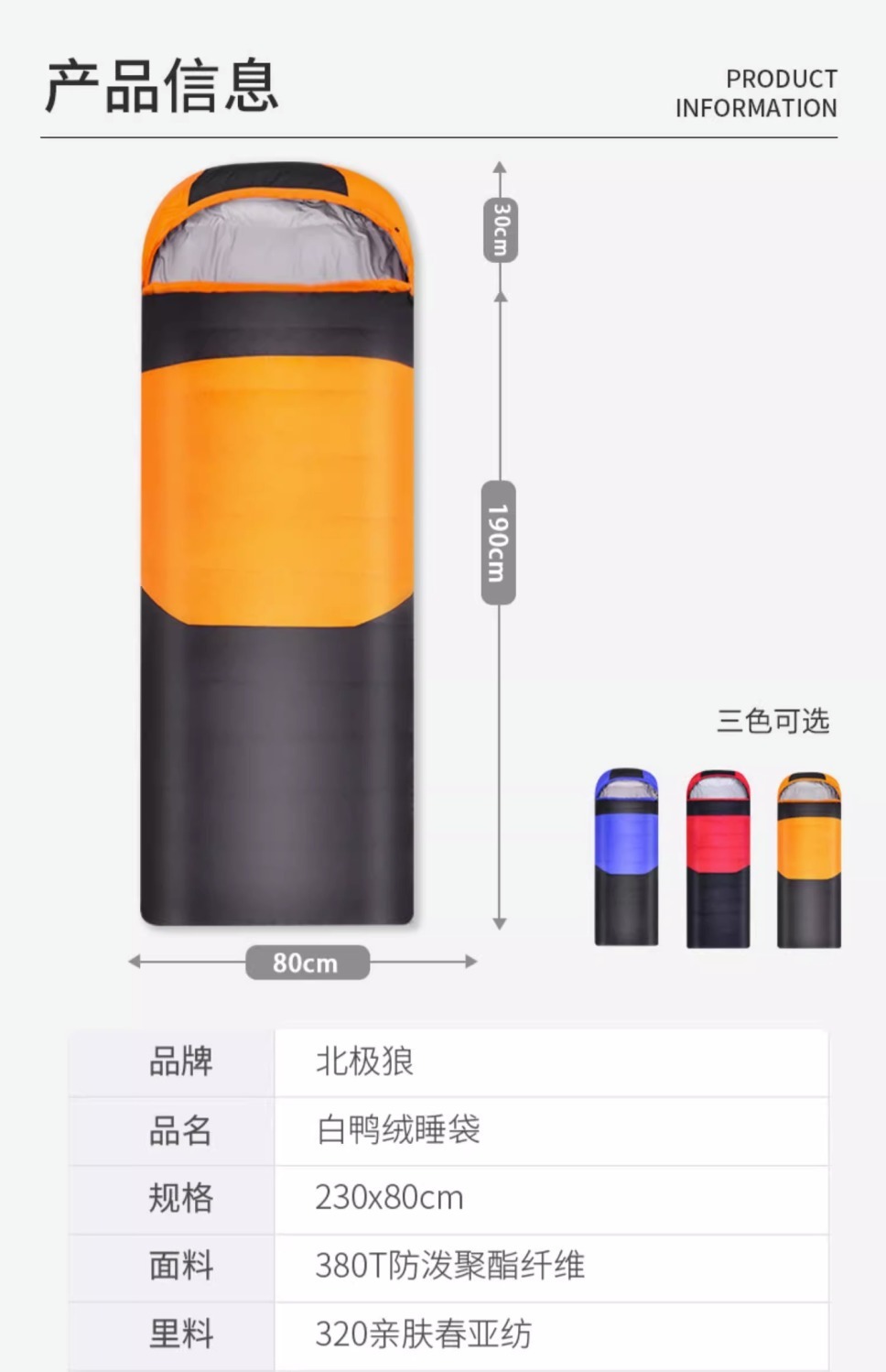 c全全新款冬季户外旅行便携式野营防寒加厚羽绒保暖四季成人睡袋