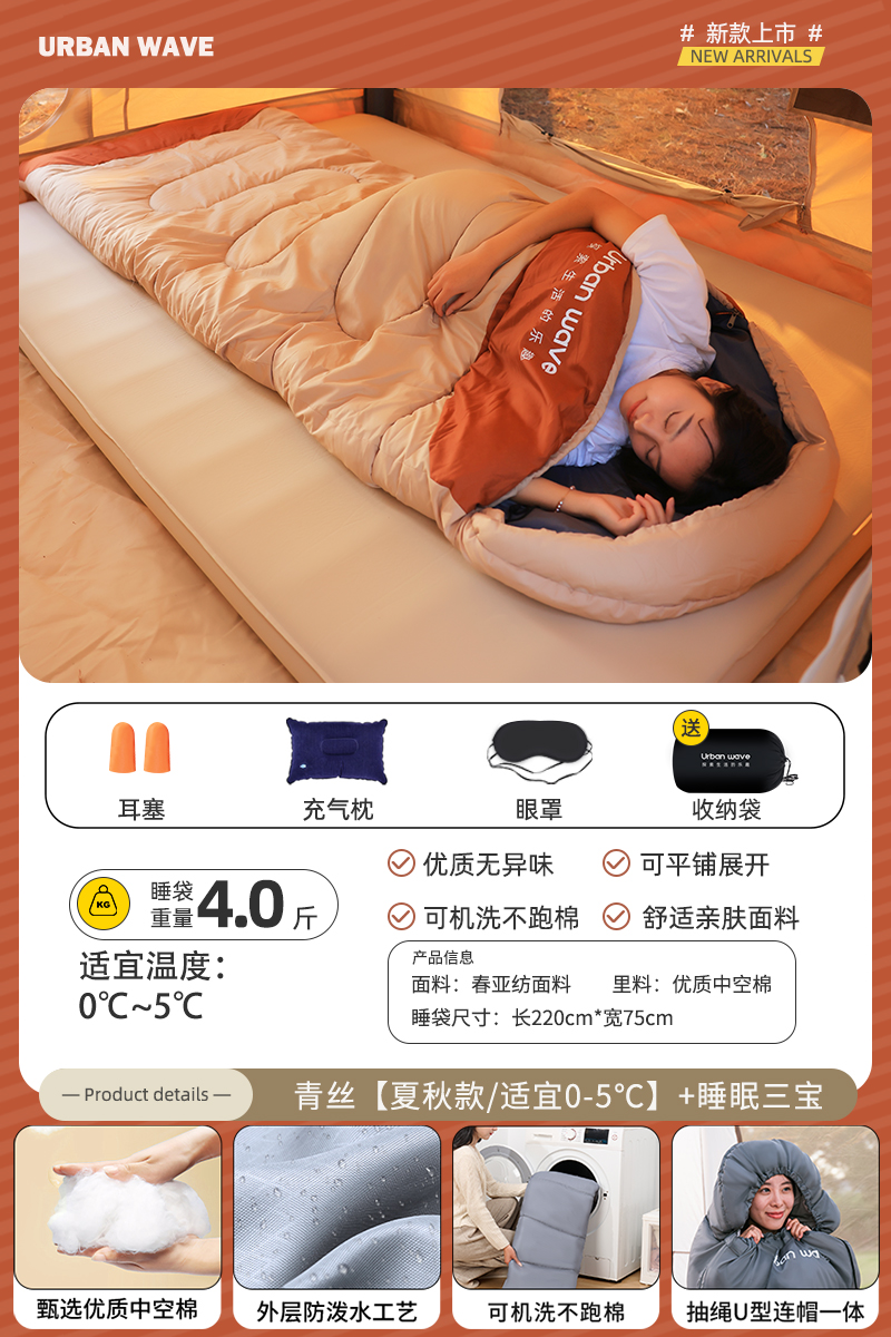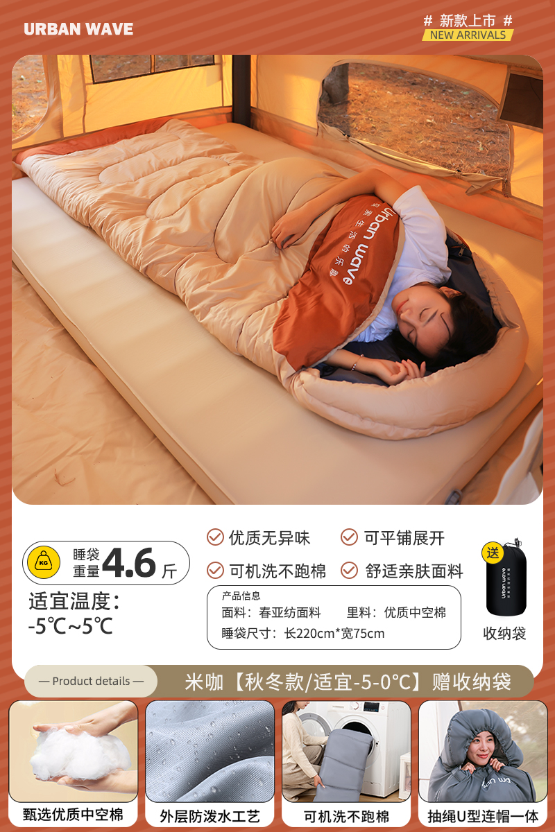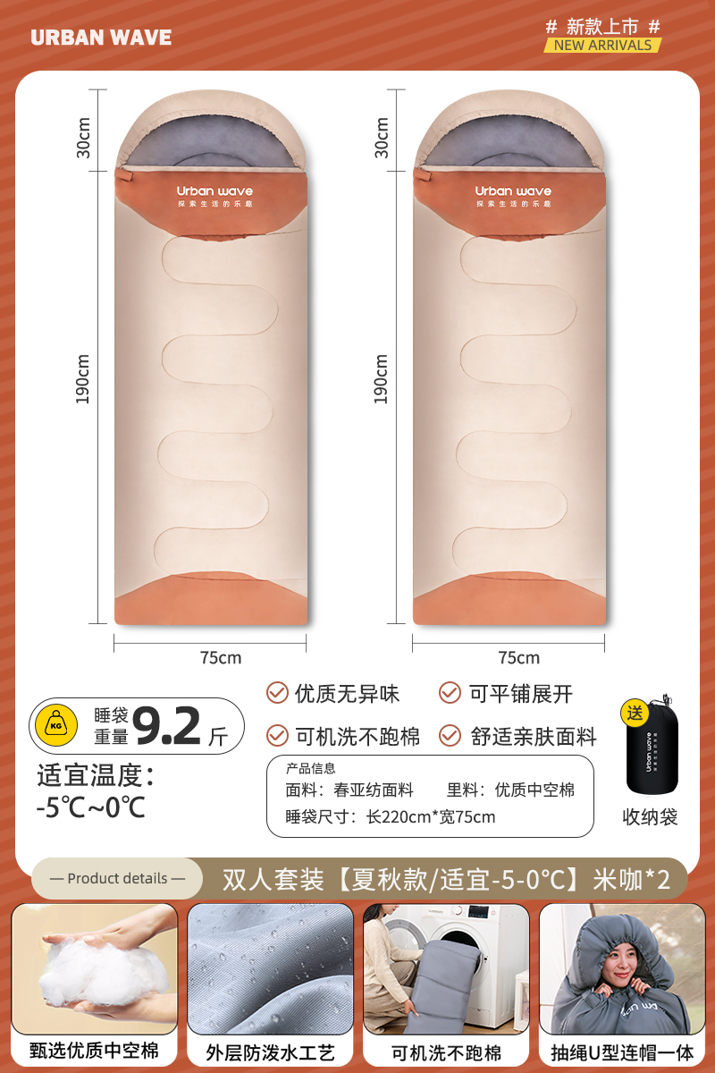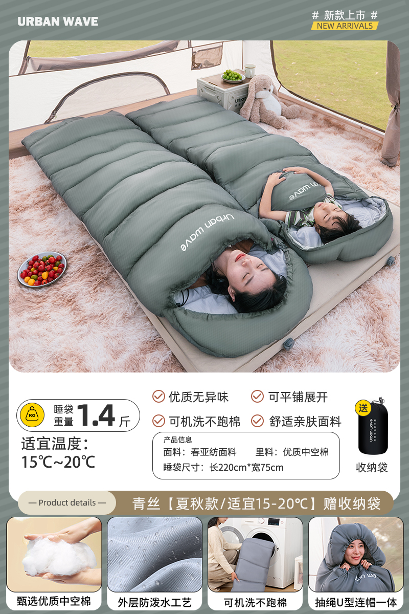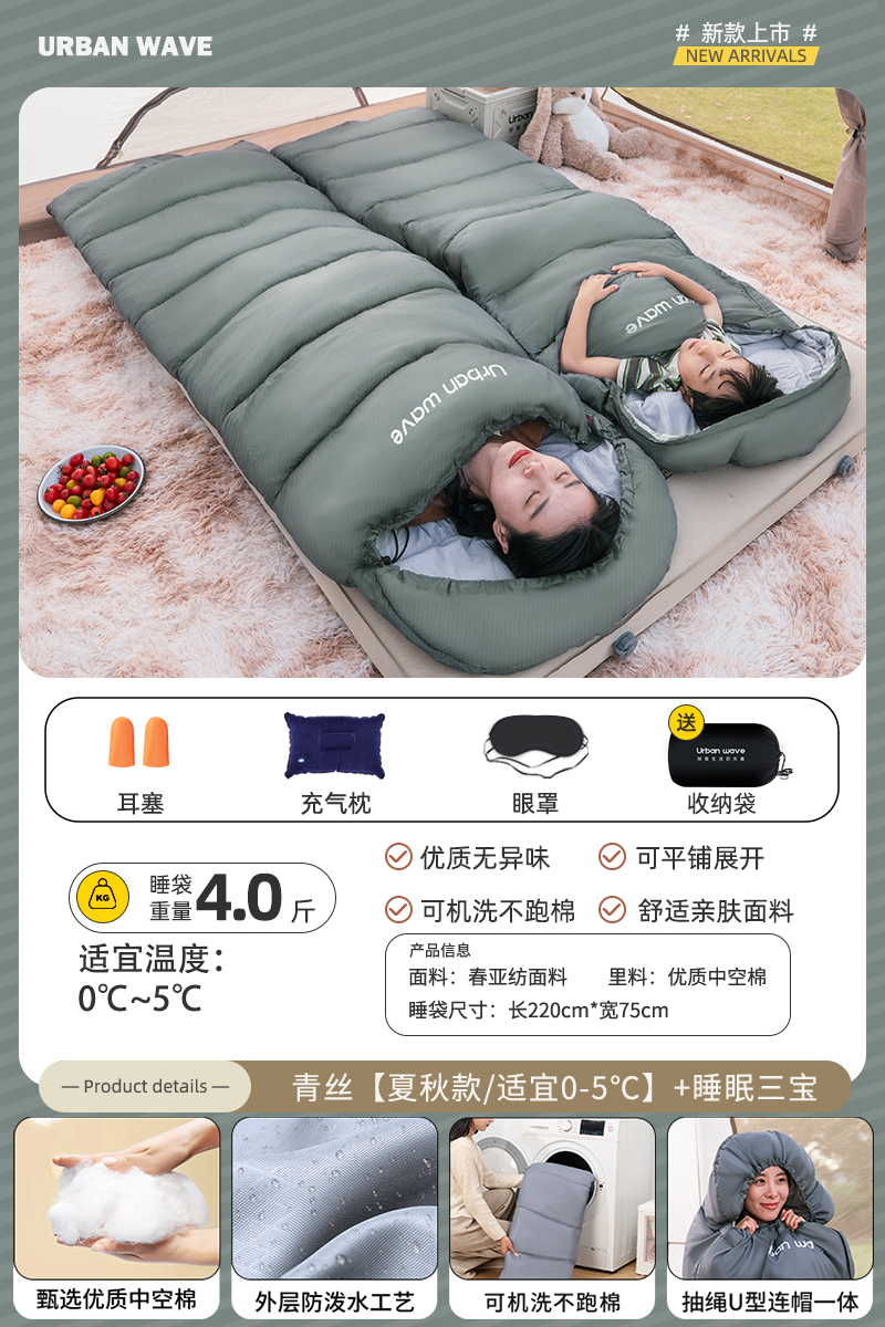 城市波浪睡袋秋冬款成人加厚防寒冬季双人睡袋露营户外办公室午休