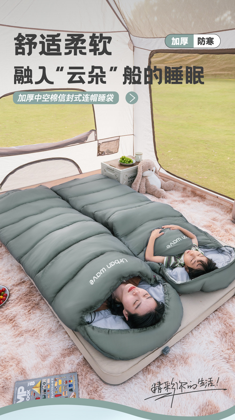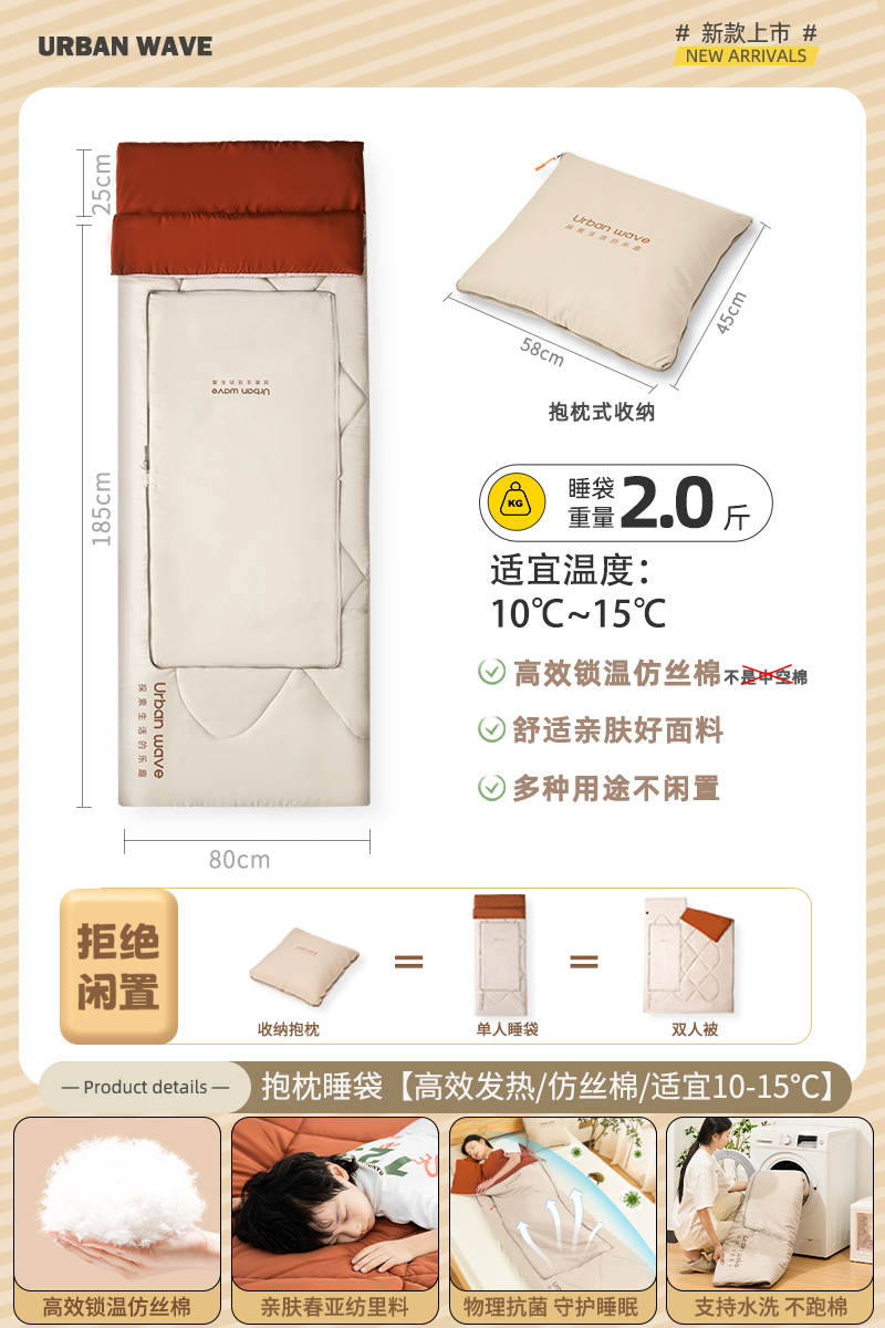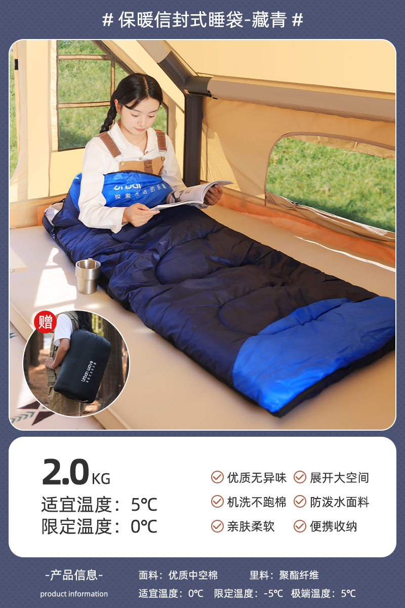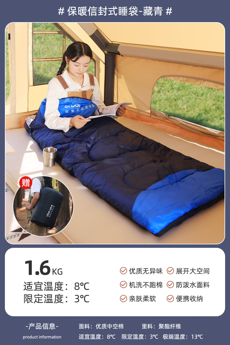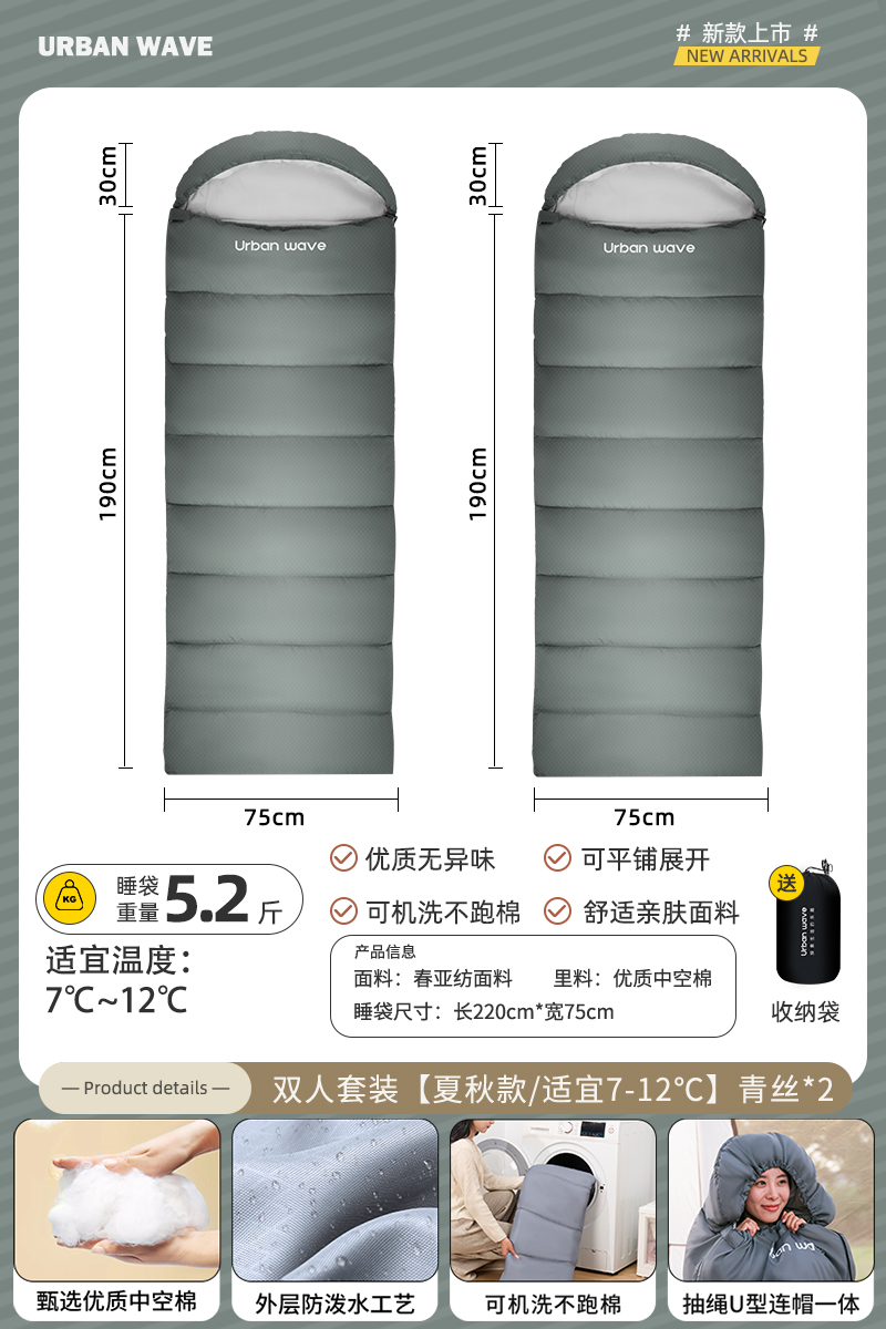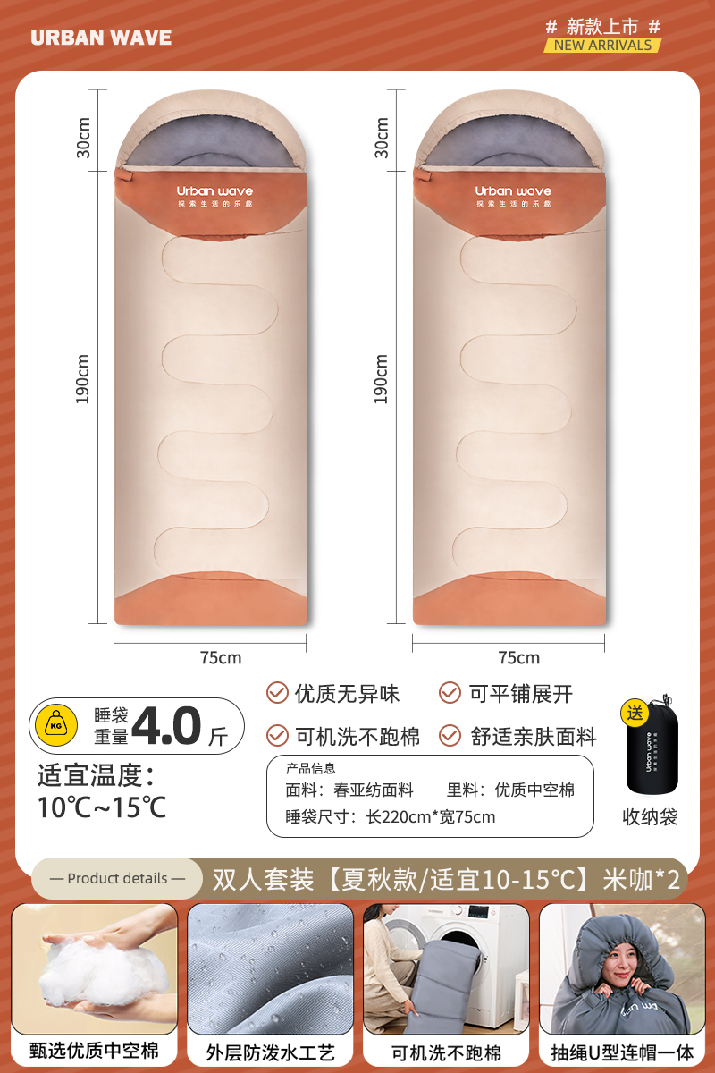 城市波浪睡袋秋冬款成人加厚防寒冬季双人睡袋露营户外办公室午休