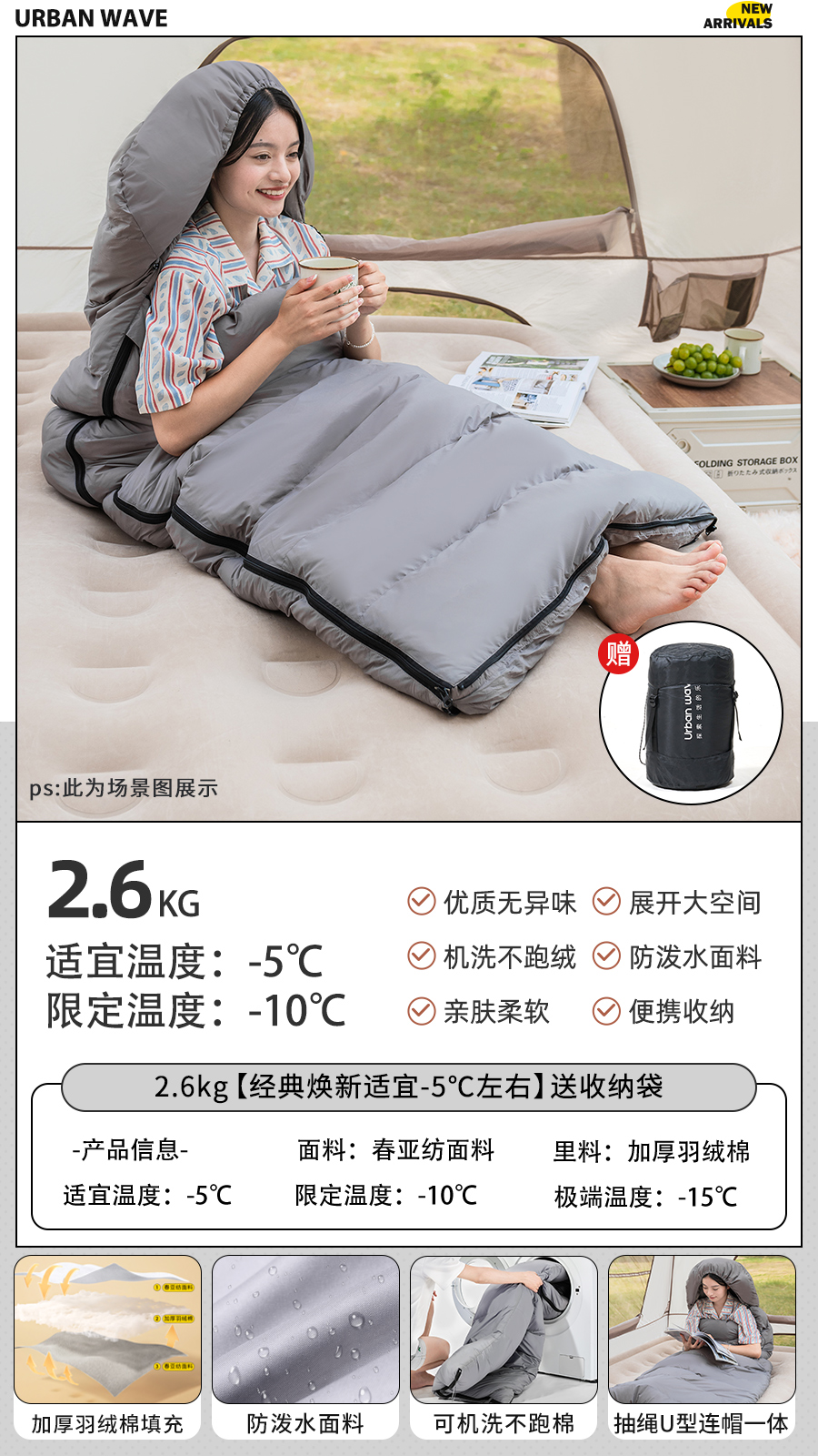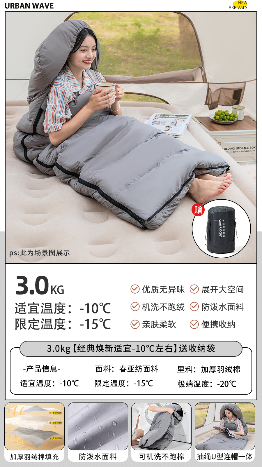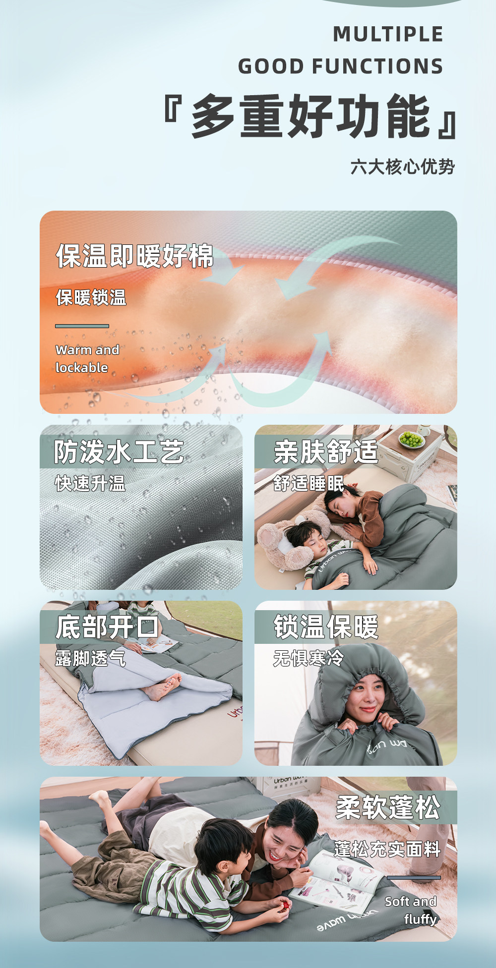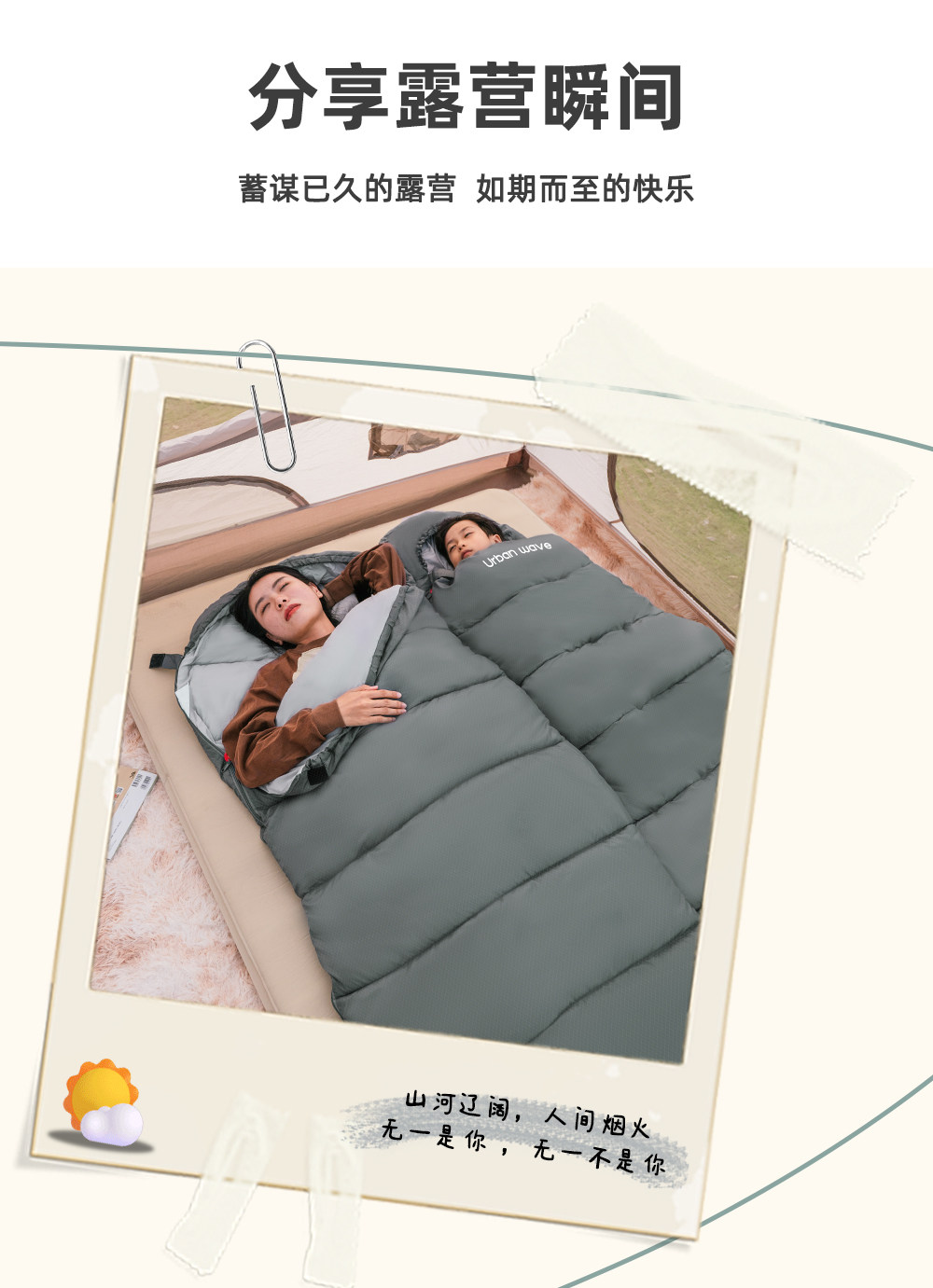 城市波浪睡袋秋冬款成人加厚防寒冬季双人睡袋露营户外办公室午休