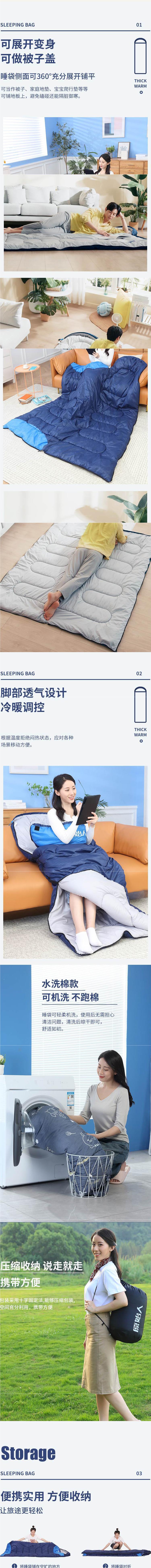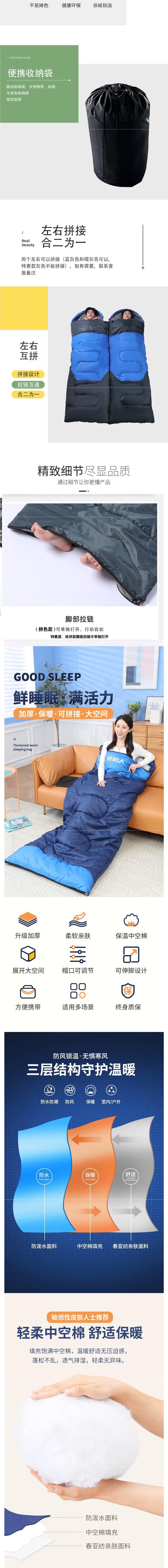 加厚睡袋冬季户外午休棉睡袋便携野外露营成人防寒保暖睡袋信封式