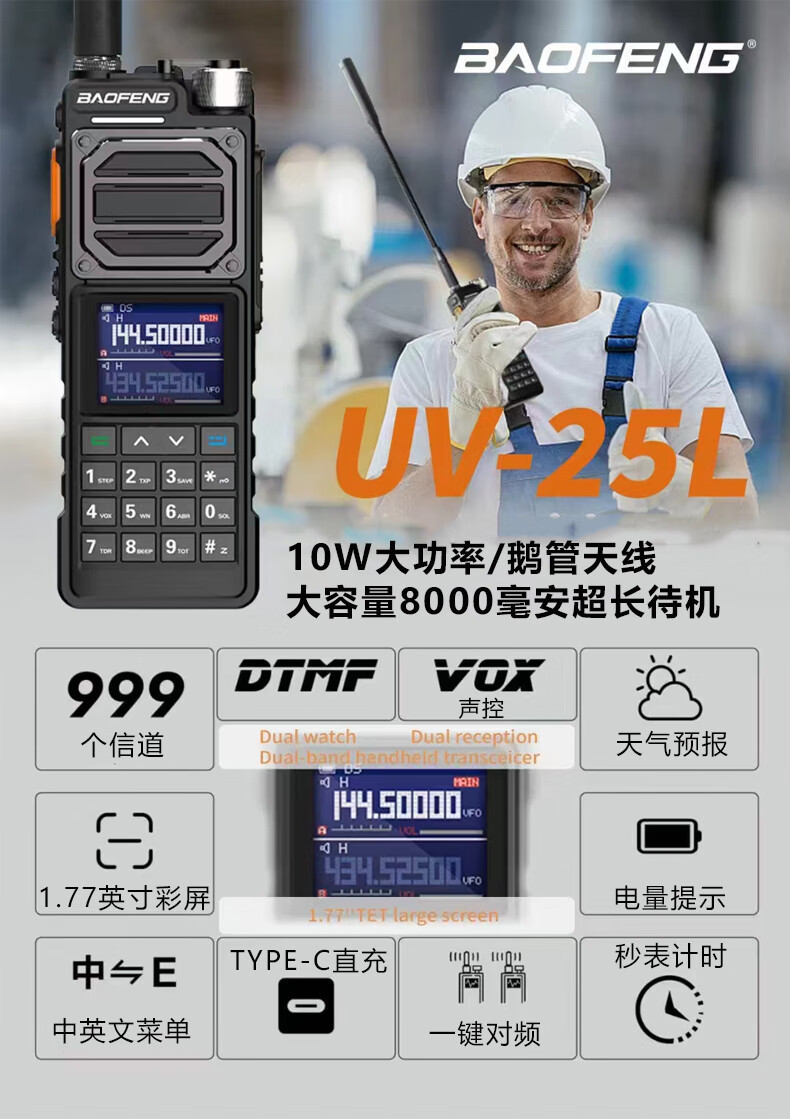 BAOFENG宝锋UV-25L对讲户外船用自驾游大功率手台UV双频厂家批发