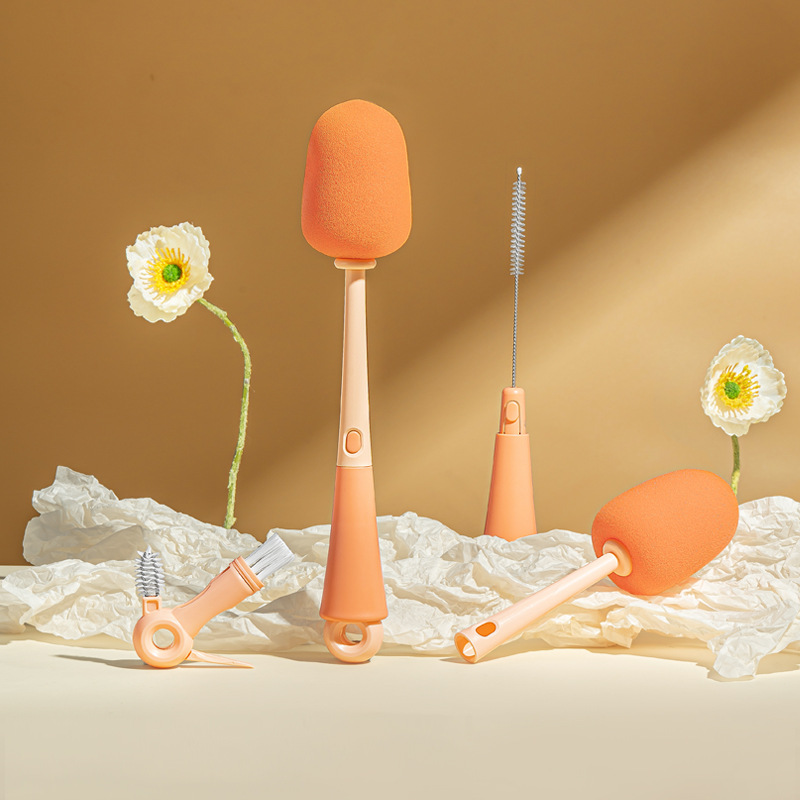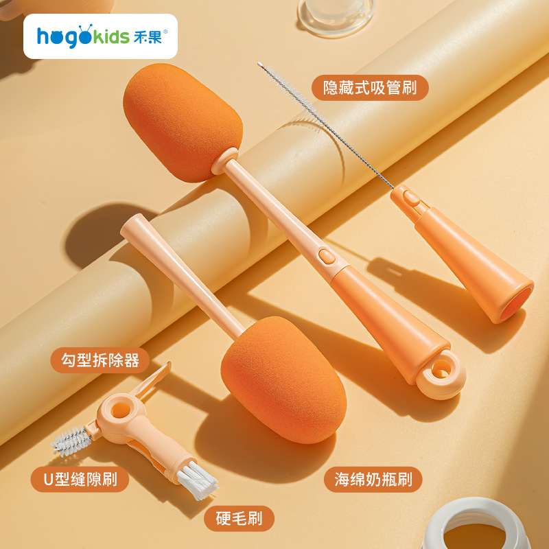 禾果儿童尼龙奶瓶刷批发便携式五合一组合清洁杯刷奶嘴刷吸管刷