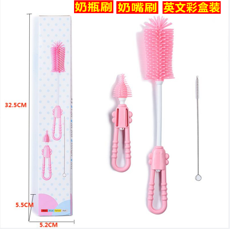 英文彩盒装奶瓶刷奶嘴刷奶嘴级硅胶刷子茶壶茶具奶嘴清洁刷硅胶刷