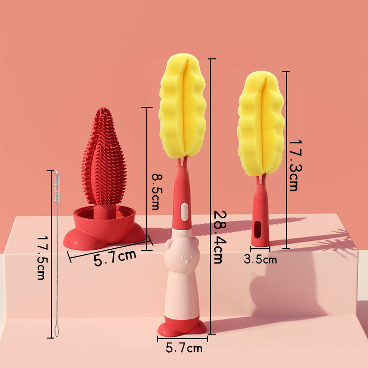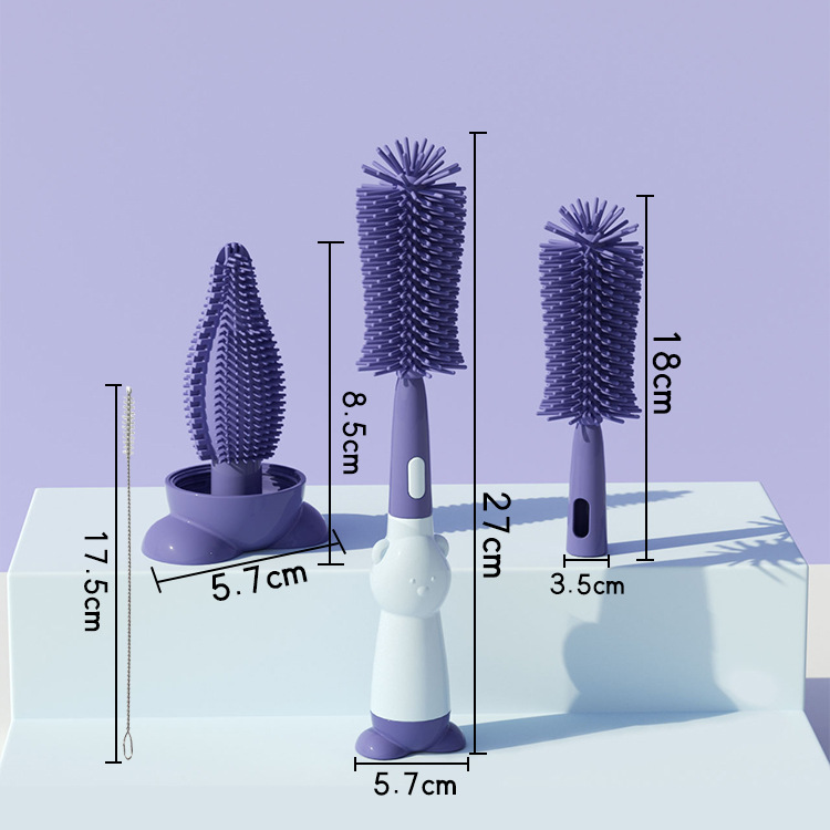 跨境专供食品级硅胶奶瓶刷便携三合一多功能清洁刷吸管婴儿奶瓶刷