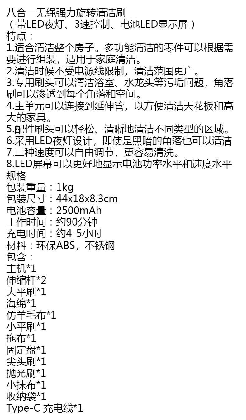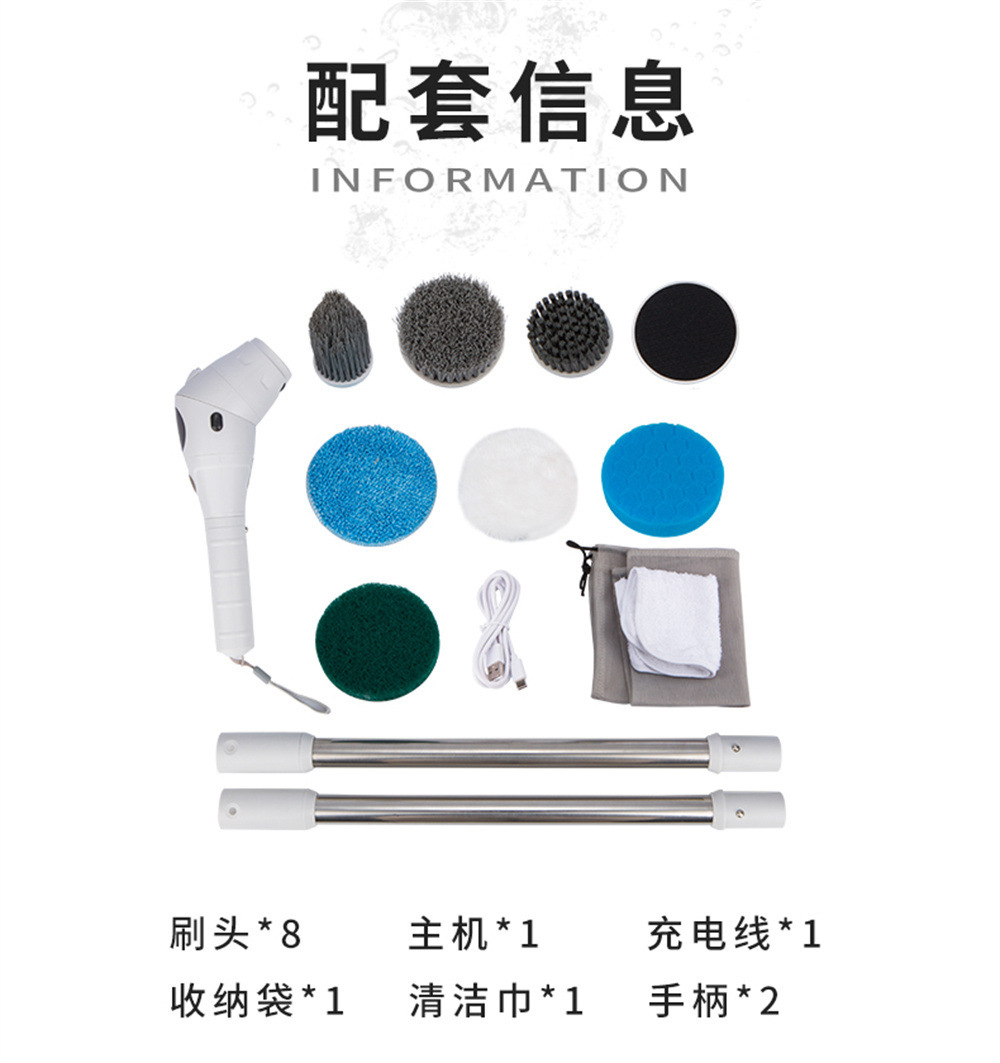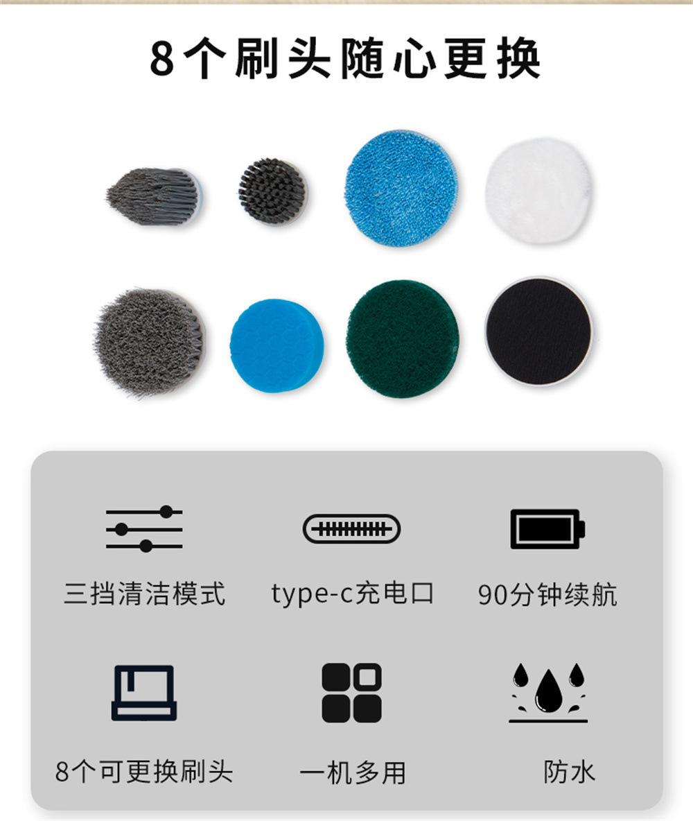 新款电动清洁刷八合一显示屏三挡可旋转夜灯多功能防水无线清洁刷