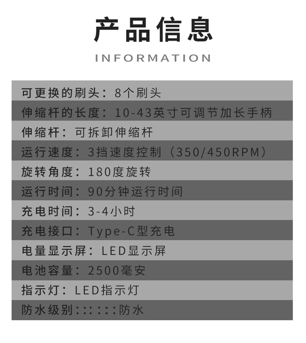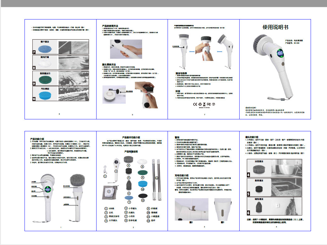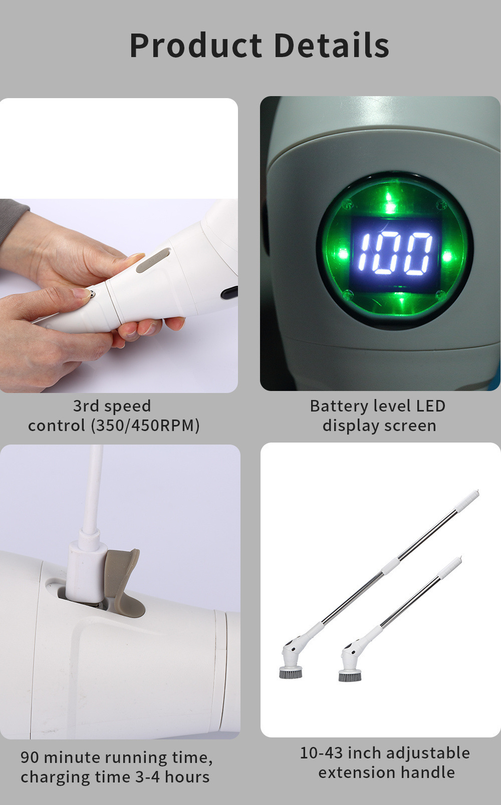 新款电动清洁刷八合一显示屏三挡可旋转夜灯多功能防水无线清洁刷