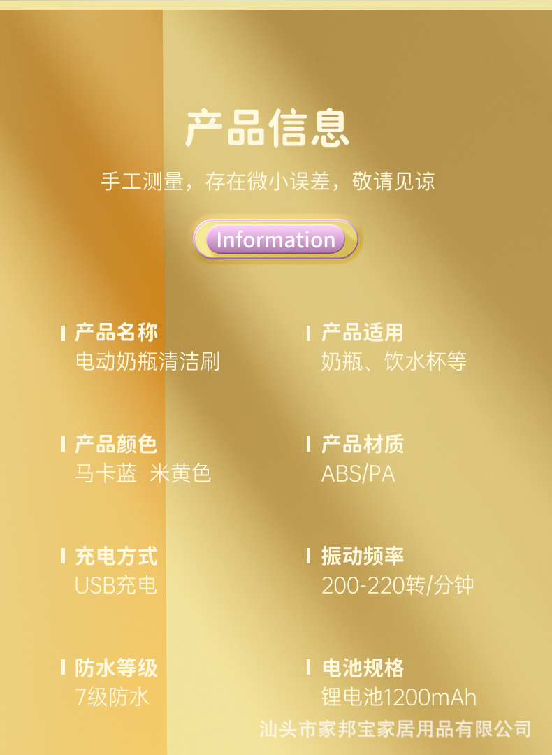 | electric baby bottle brush large power 1200 ma(电动奶瓶刷大动力1200毫安) | USD $6.39 | 4317 piece available |