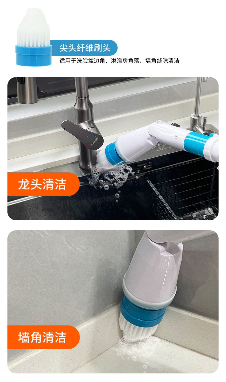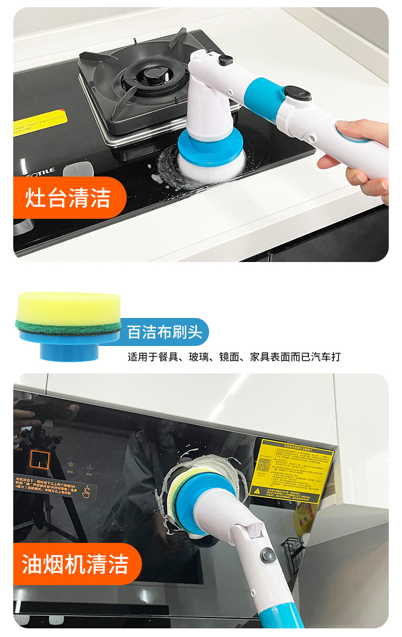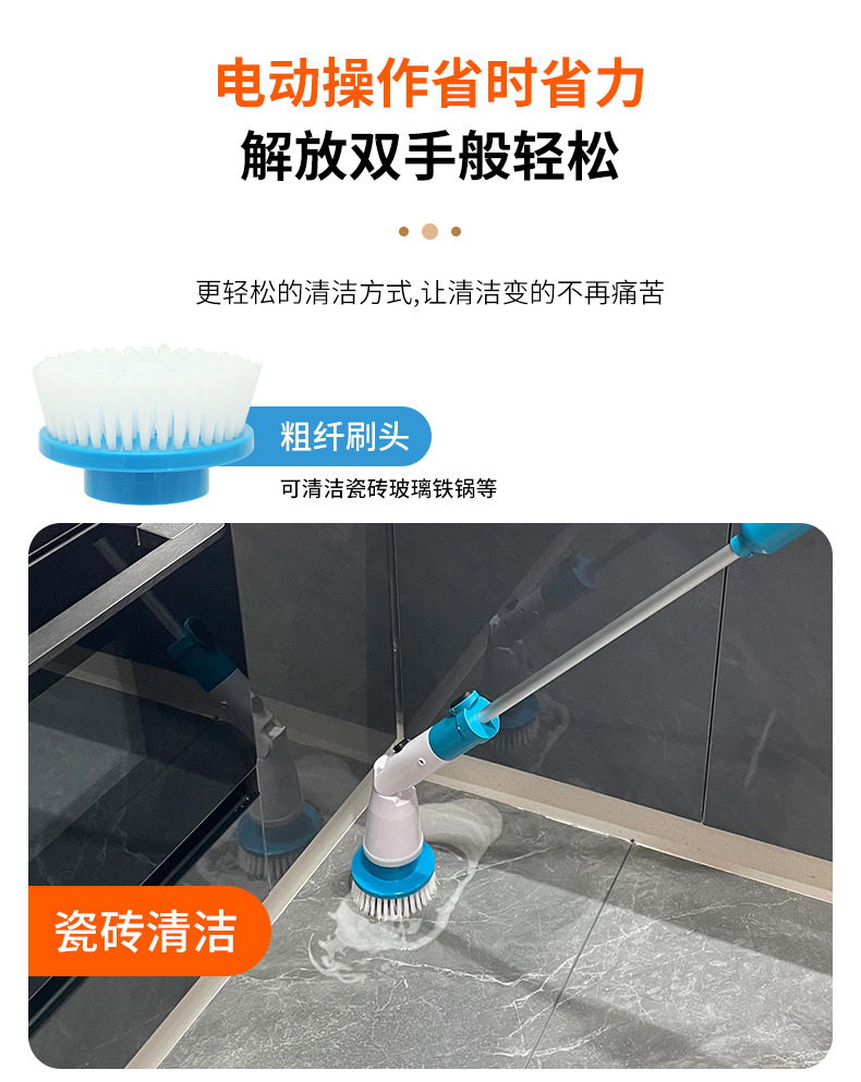 跨境新款电动清洁刷厨房卫生间多功能清洁器手持无线长柄充电刷子