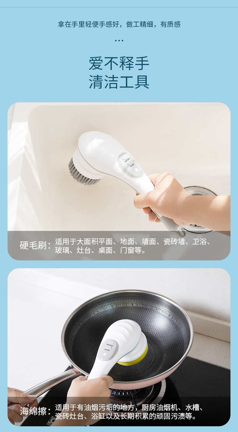 跨境多功能清洁刷家用厨房USB充电刷锅刷碗神器无线电动洗碗刷