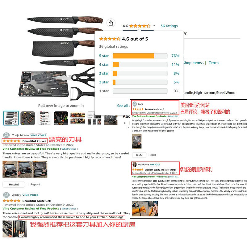 乐其阳江厨房刀具套装双层不粘涂层波浪纹锋利菜刀六件套礼品套刀