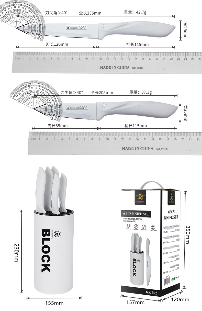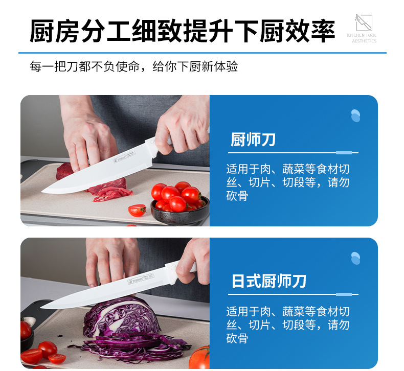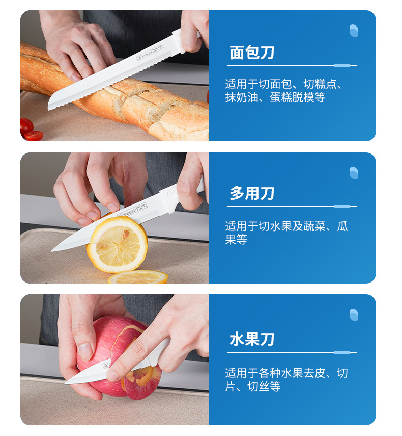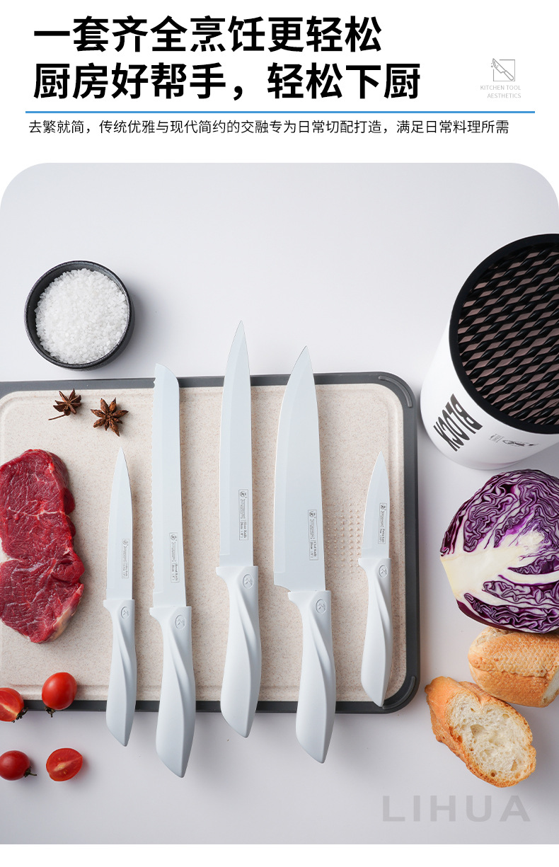 家美康刀具套装6件套刀不锈钢厨师刀锋利水果刀白色礼品组合套刀