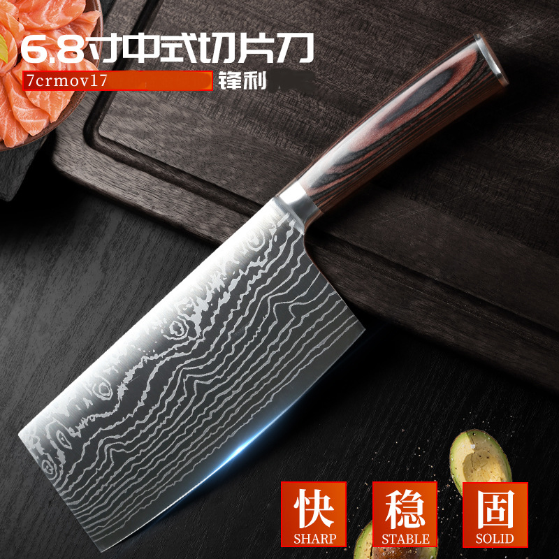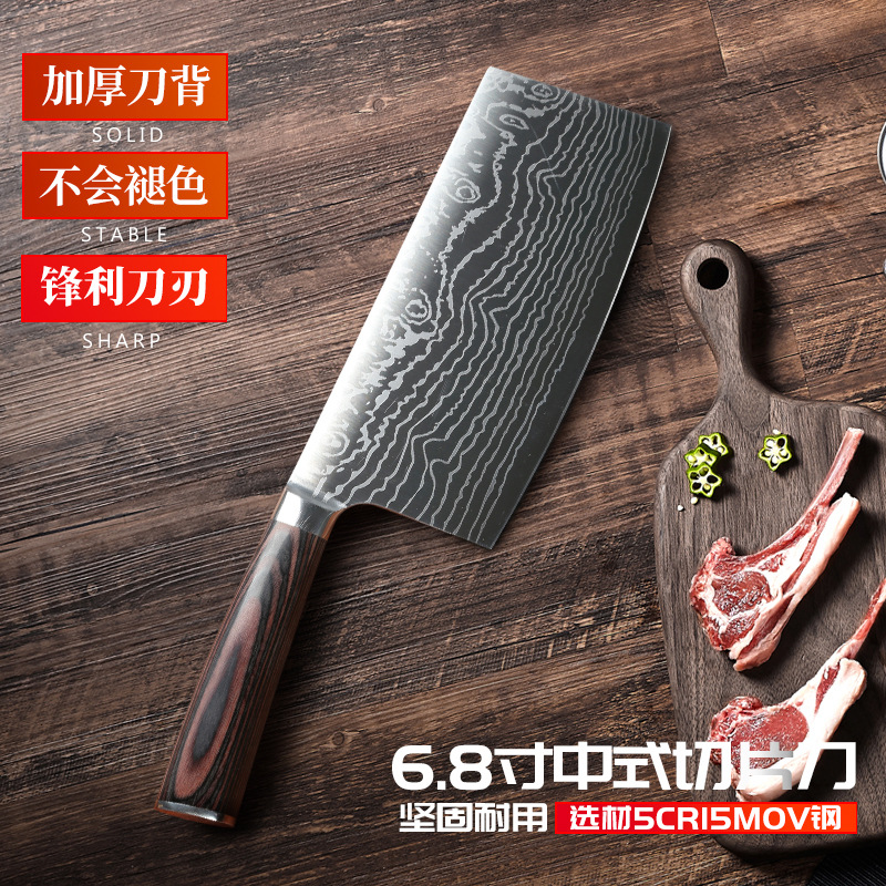 不锈钢菜刀家用锋利切菜刀切肉刀切片大马士革花纹厨刀5cr15现货