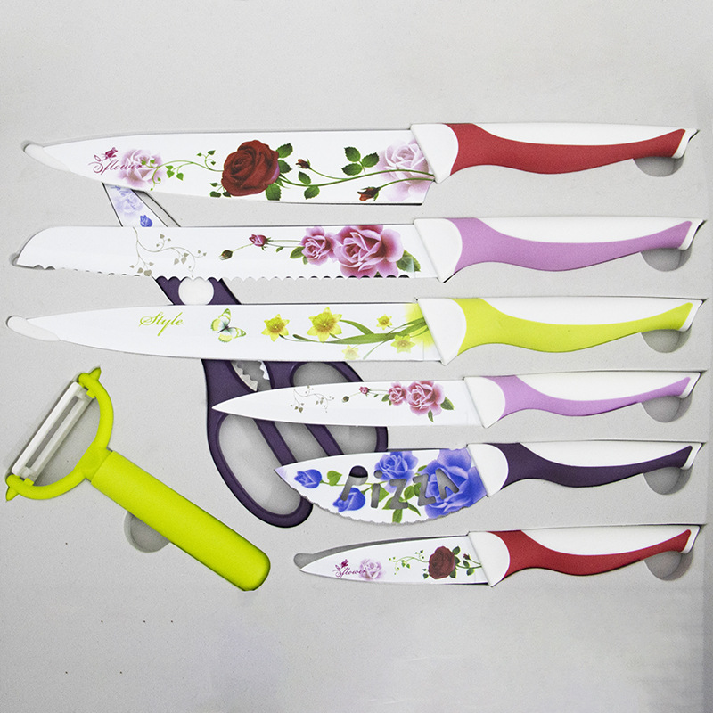 彩色印花刀具套装高质量不锈钢披萨刀水果刀英文礼盒包装定制代发