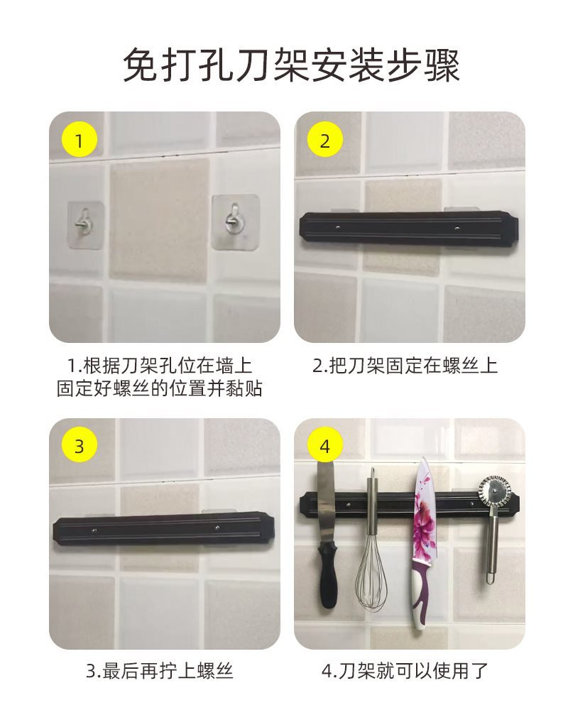 刀架五件套免打孔厨房置物架磁力刀架壁挂式磁吸式工具餐具上墙20