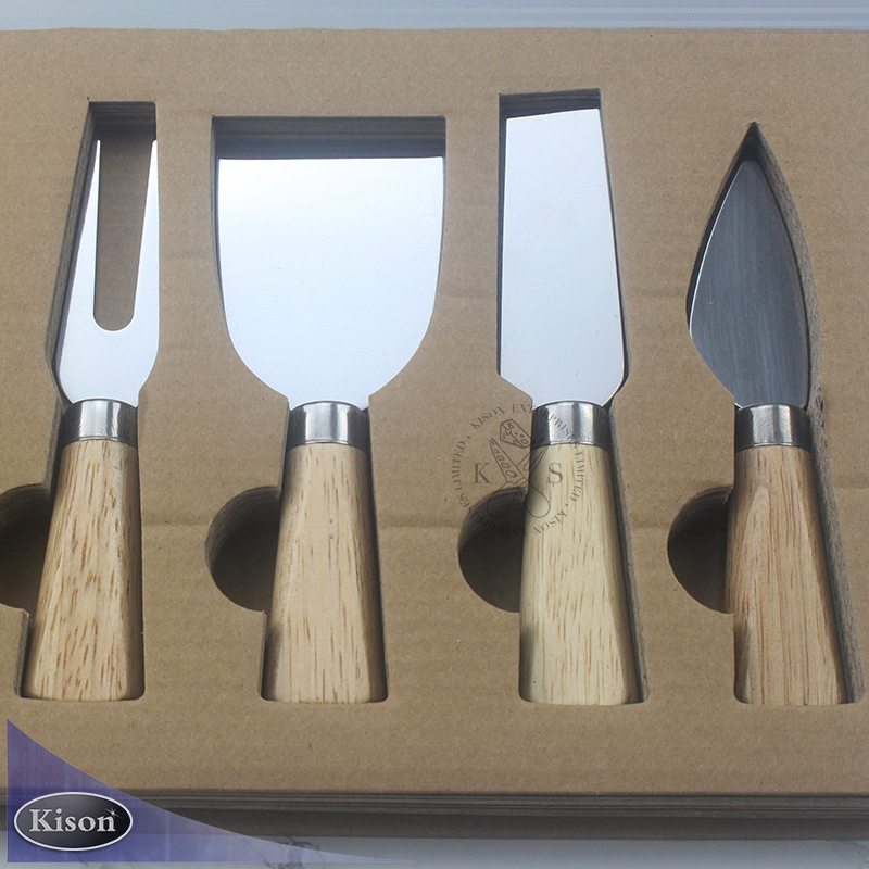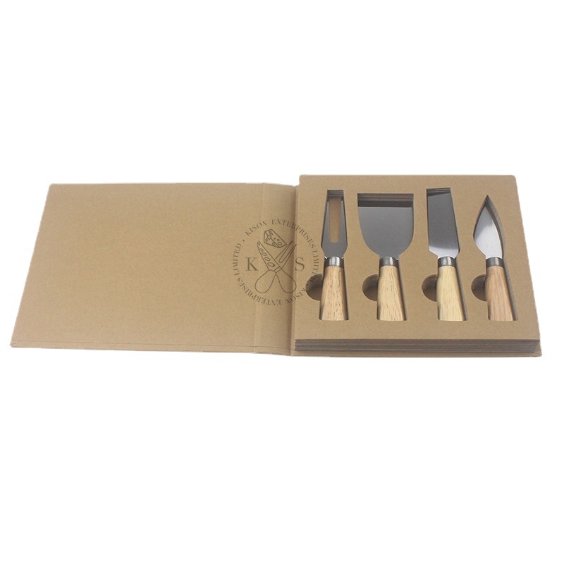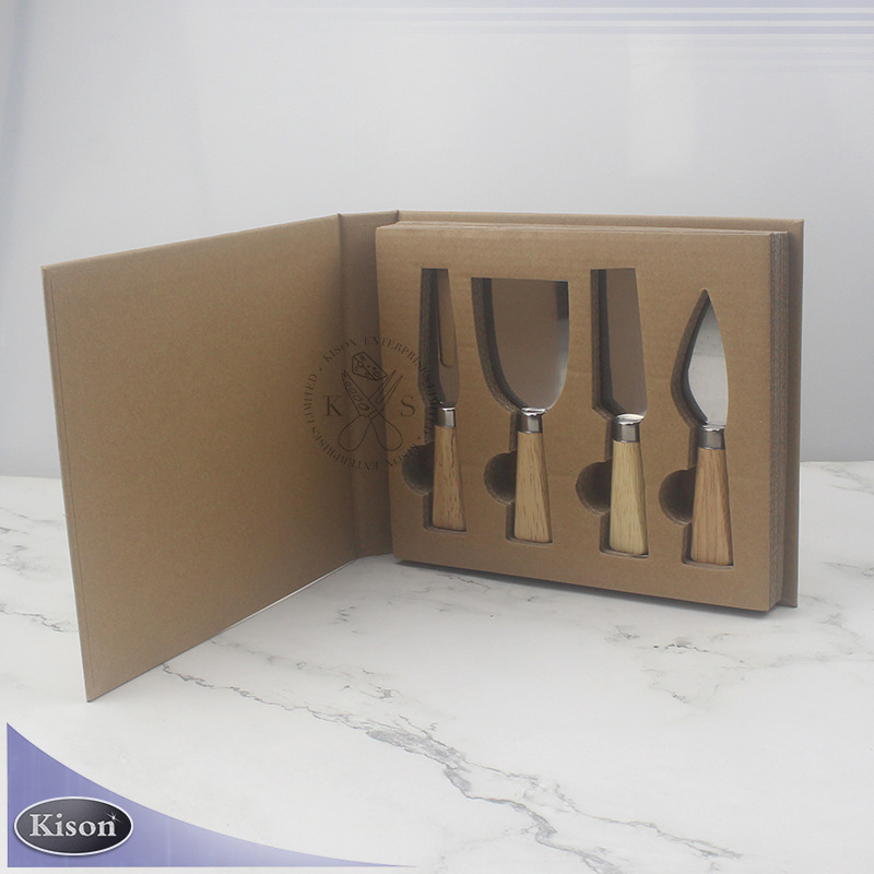 硬纸板书本盒装 橡胶木小金子塔柄芝士刀4件套