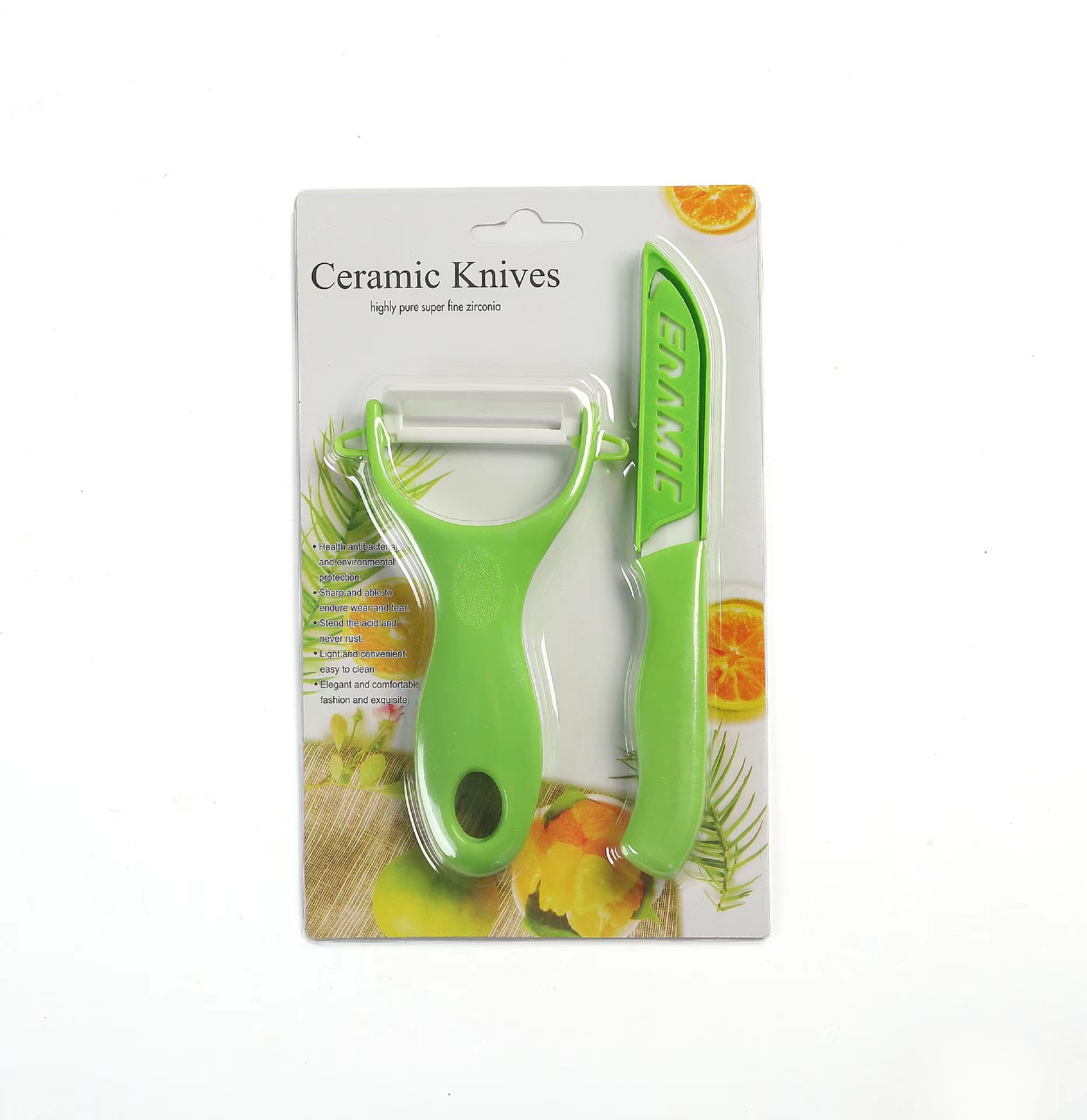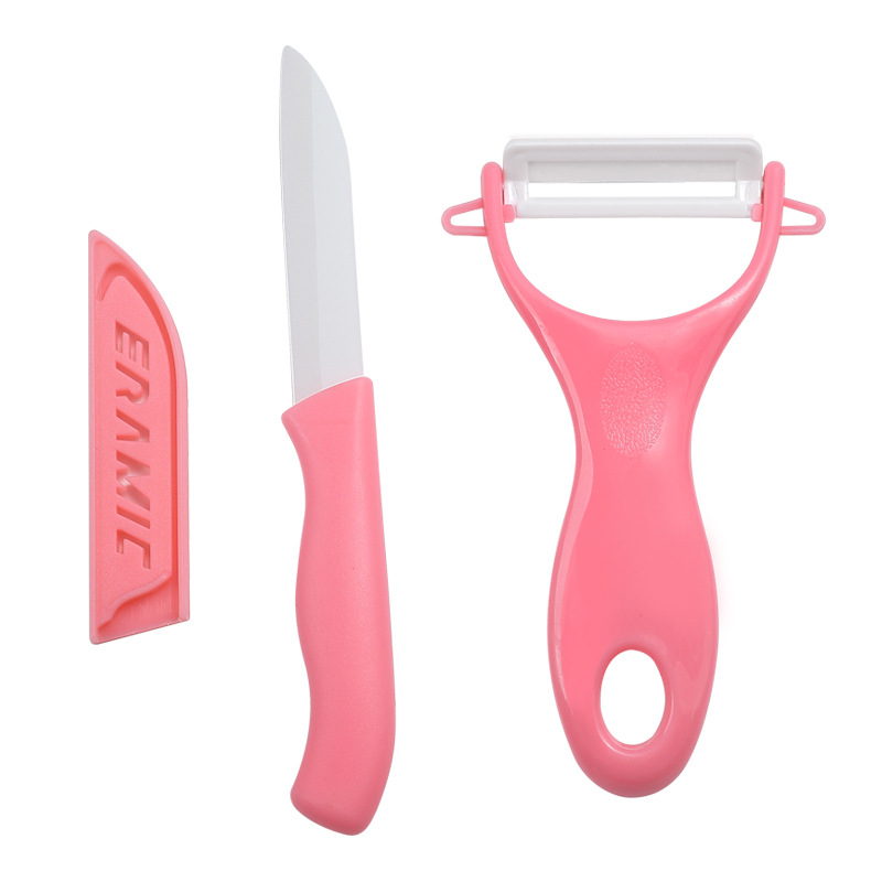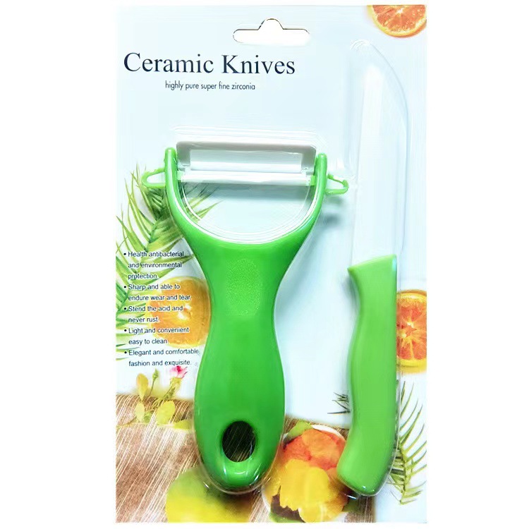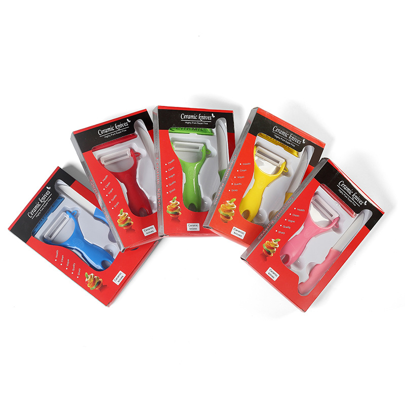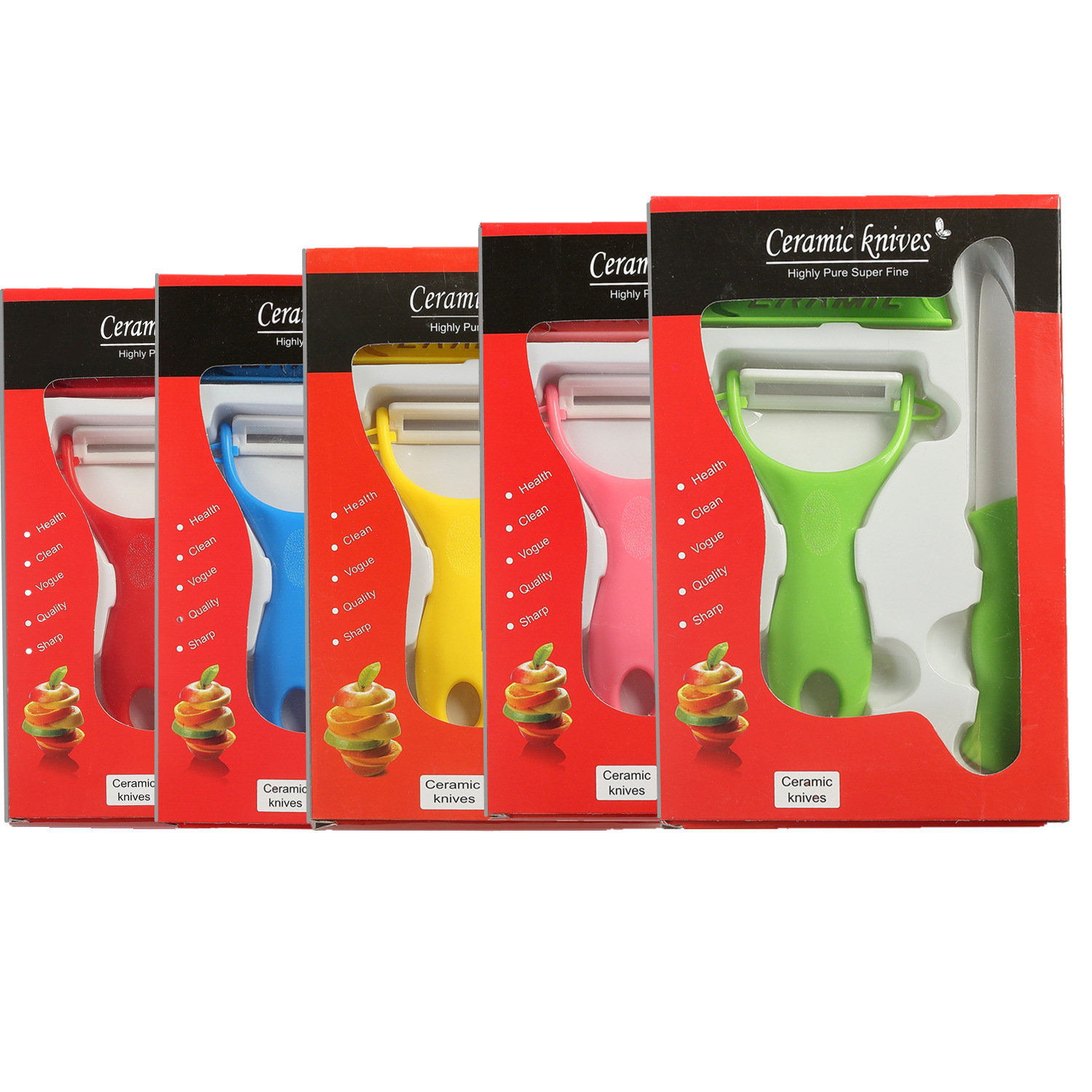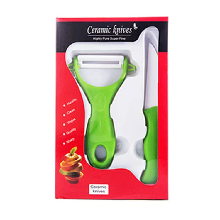 工厂批发英文红盒陶瓷刀两件套带刀套水果刀陶瓷瓜刨彩色水果刀