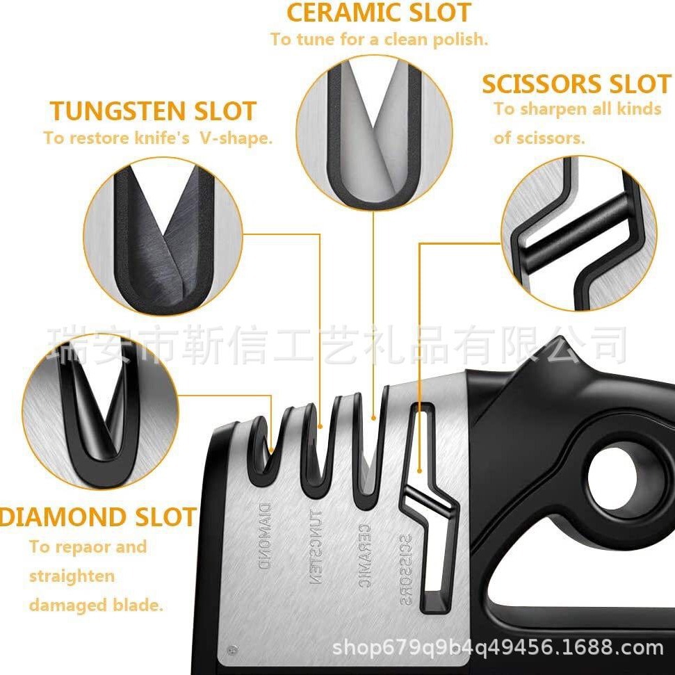 厂家批发四合一快速磨刀器 磨菜刀磨剪刀厨房工具磨石磨刀器