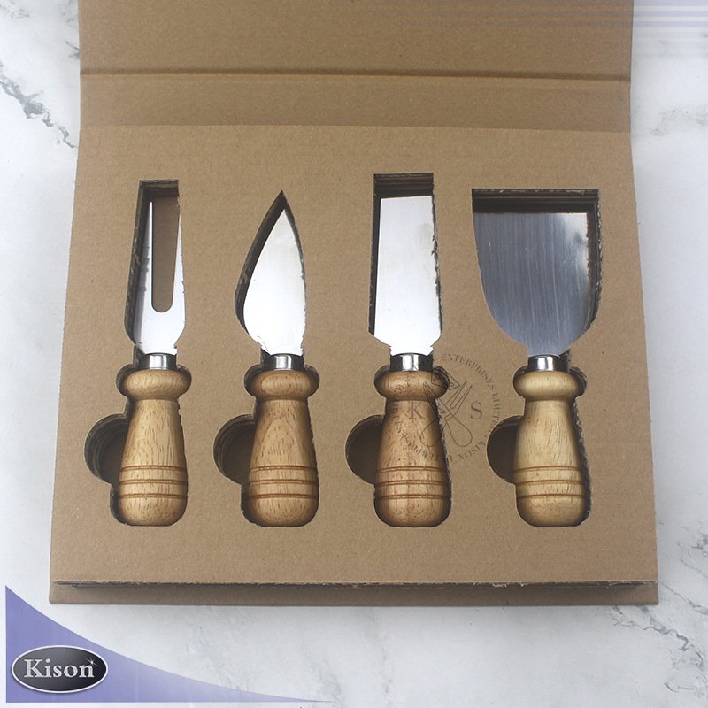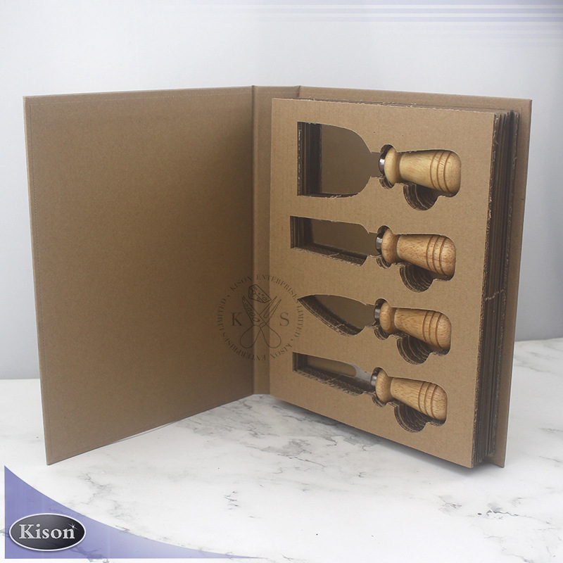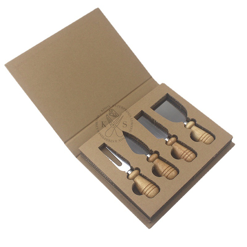 硬纸板书本盒装 橡胶木芝士刀4件套 圆柄三横纹款