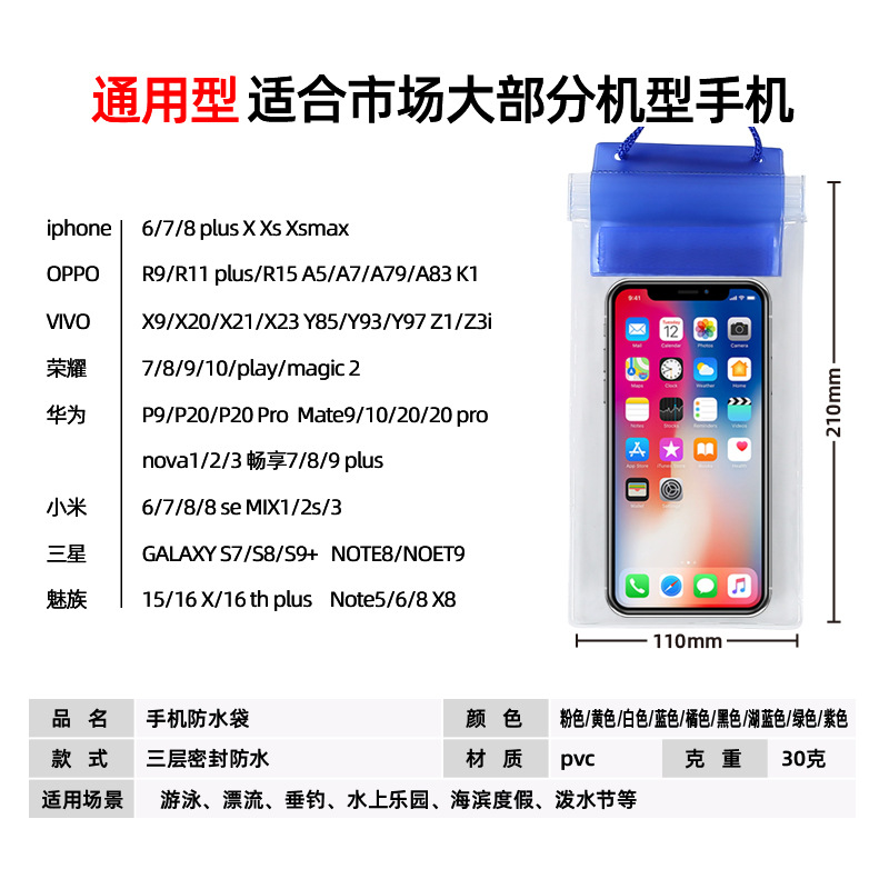 现货三层密封手机防水袋 沙滩漂流透明防水套 可触屏防水手机袋