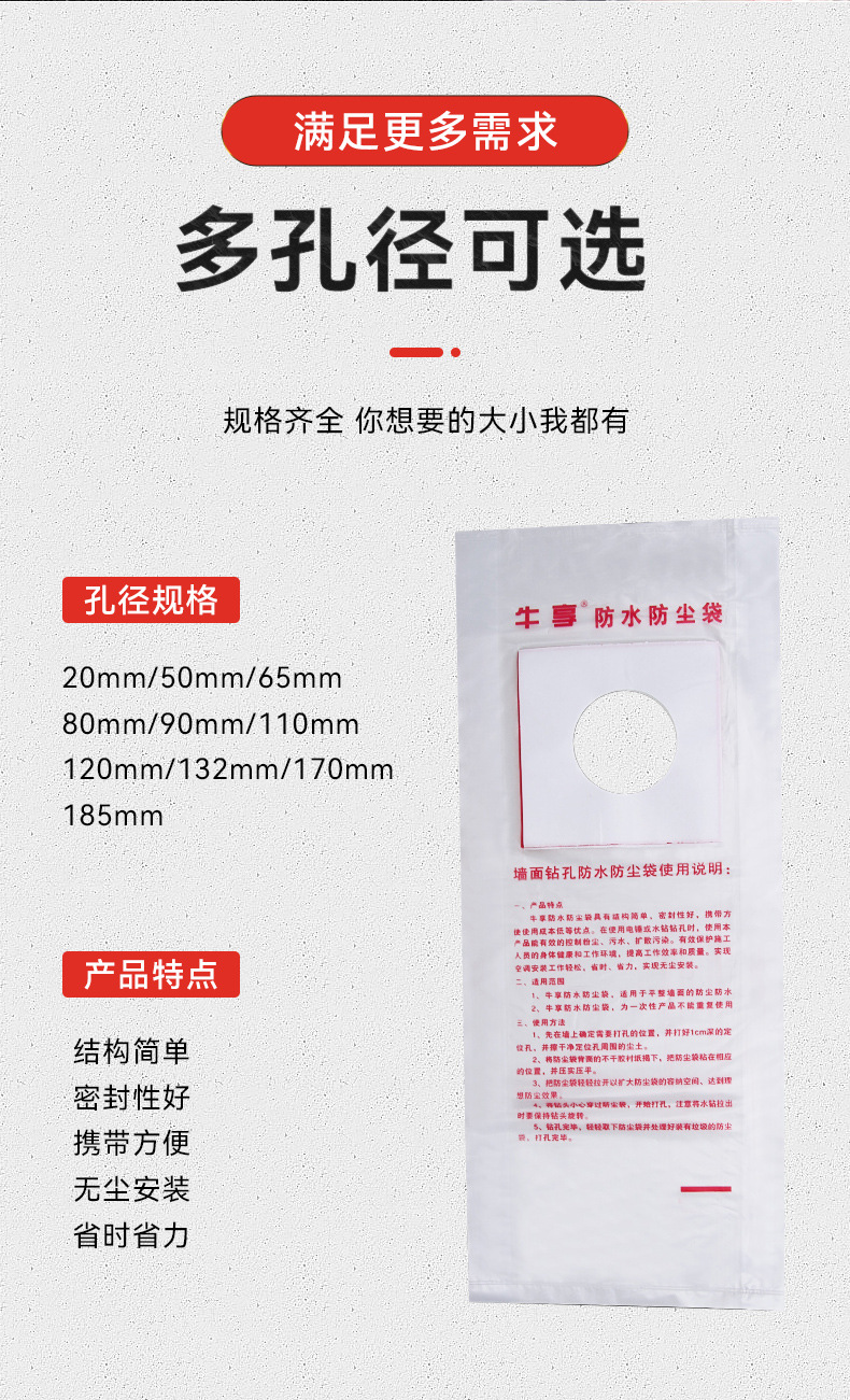防尘袋水钻打孔防水袋空调防水罩接水袋开孔钻孔打洞电锤加厚塑式
