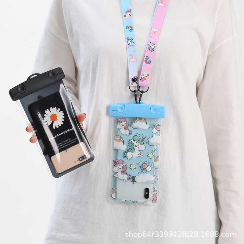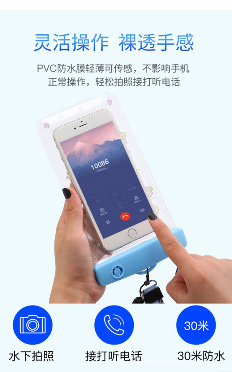 新款手机防水袋潜水套触屏游泳可斜背卡通防水套漂流游泳挂袋批发